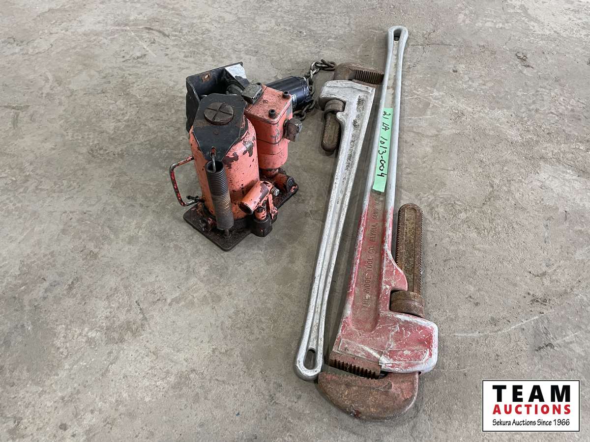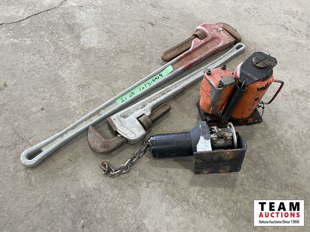 1678 36 Inch & 24 Inch Aluminum Pipe Wrench, Bottle Jack & Super Wrench