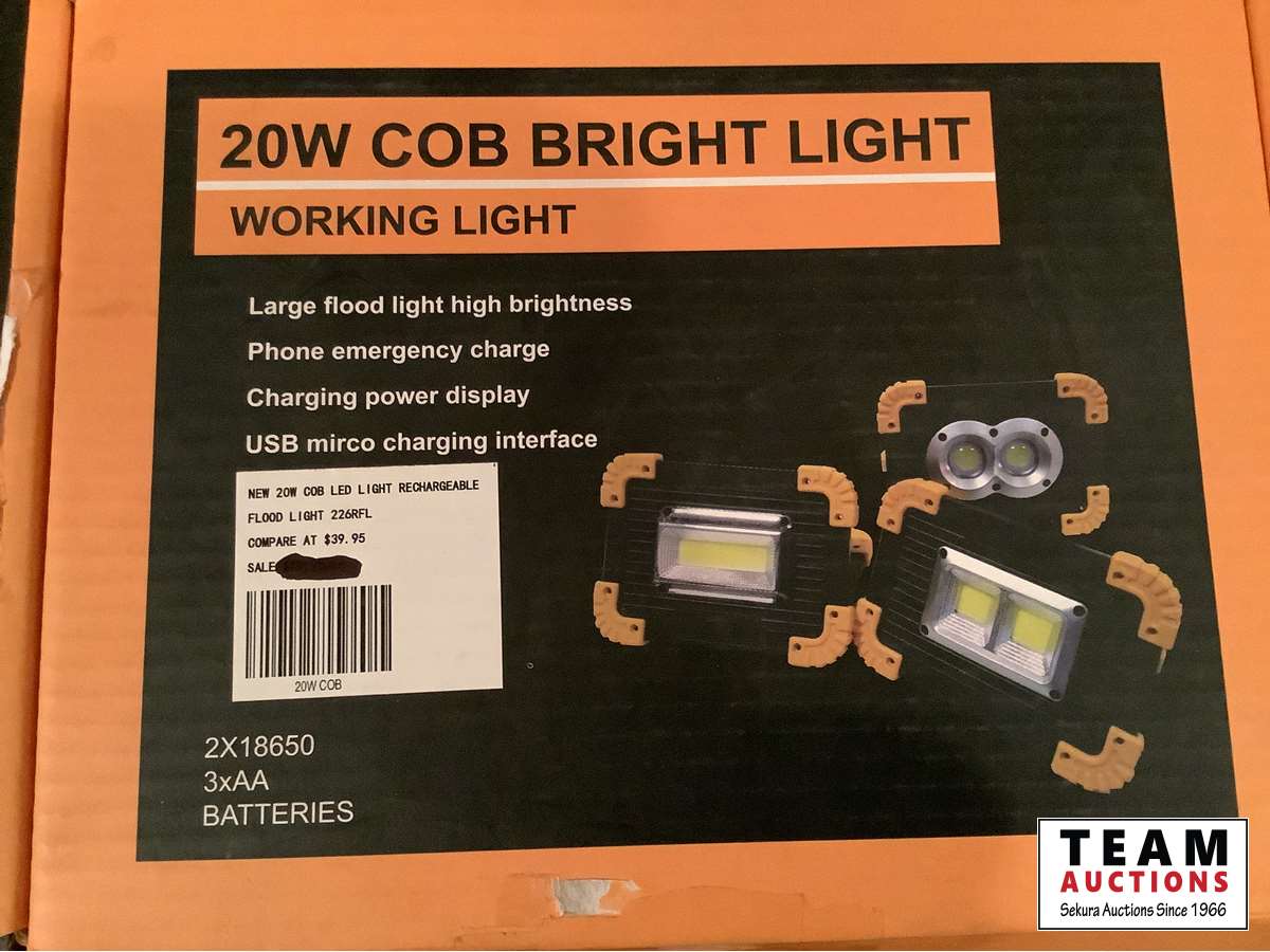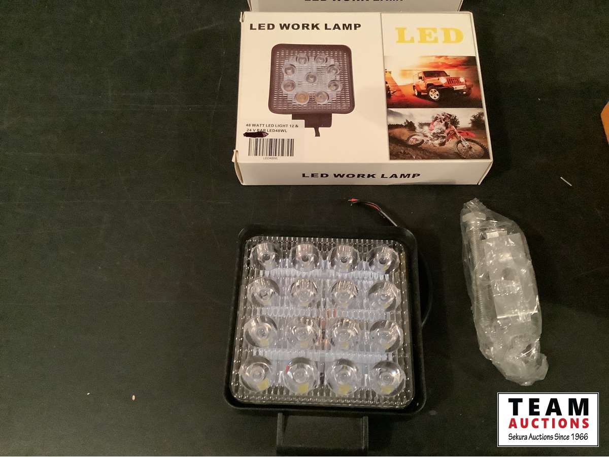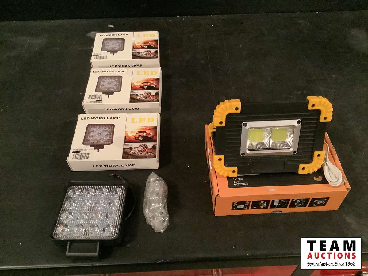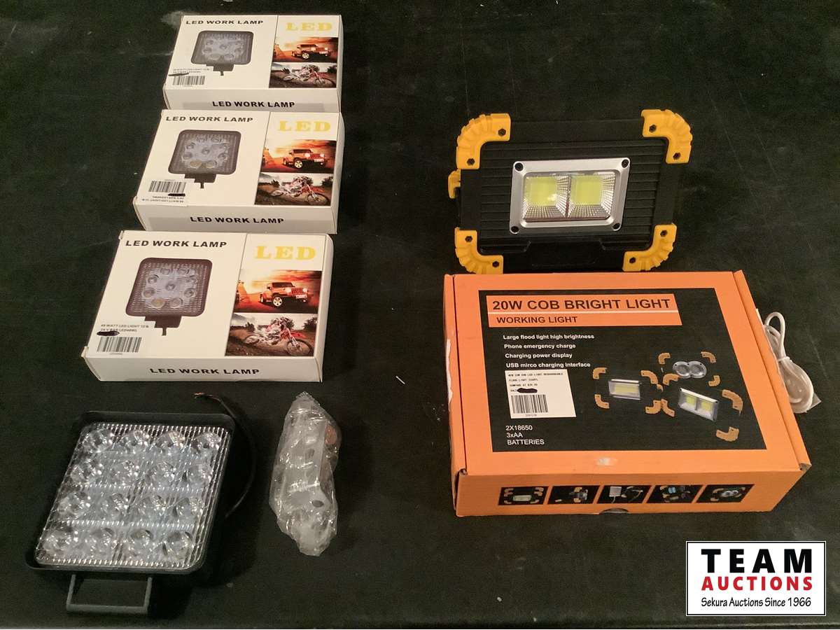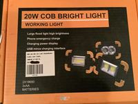 1531 (4) LED Work Lights 48 Watt with Hardware & New 20 Watt Cob Rechargeable Flood Work Light (Unused)