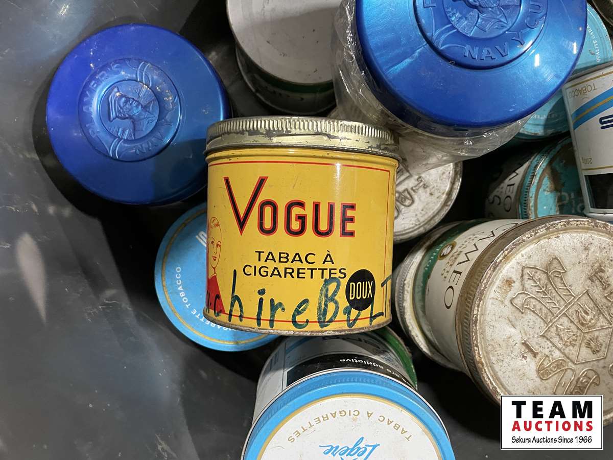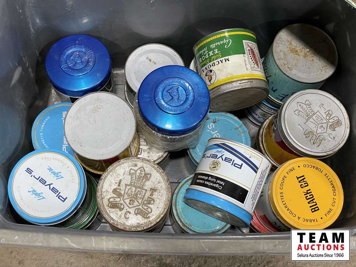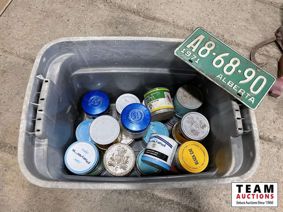 1577 Qty of Tobacco Tins & License Plate