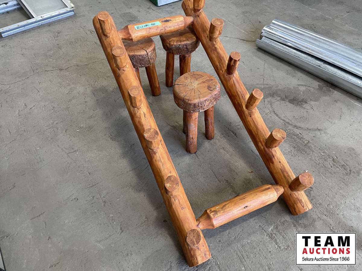 1493 Wooden Gun Rack with Wooden Stools