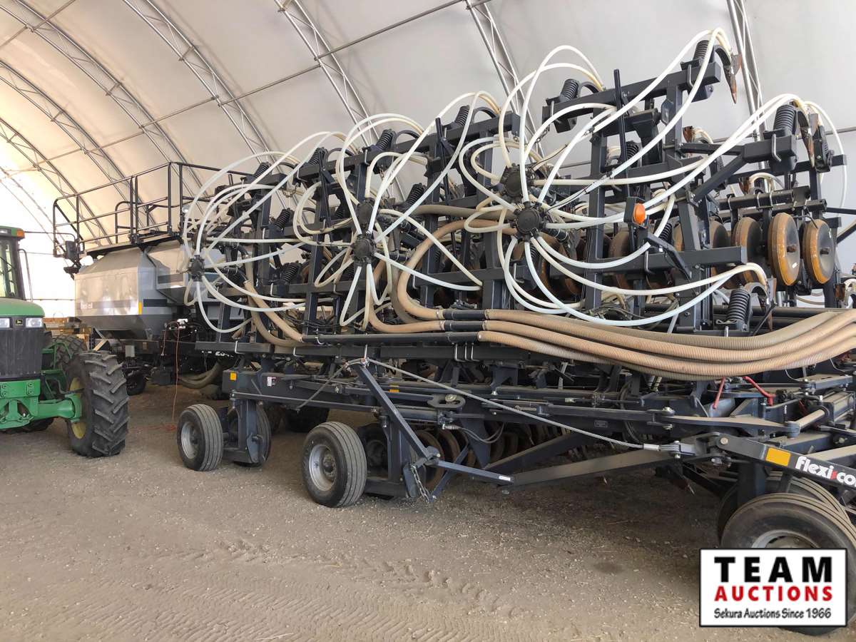 10" spacing with Dutch openers, dual shoot, 550 lb trip shanks, steel packer wheels, Flexicoil 2340 tow behind tank, optional 320 small granular tank, variable dual shoot, night light package, (3) large grain rollers, hydraulic loading auger, Flex in cab control monitor, seed treating kit, 16.5X16.1 frt & 23.1X26 rear tires, tires on whole unit are in good shape