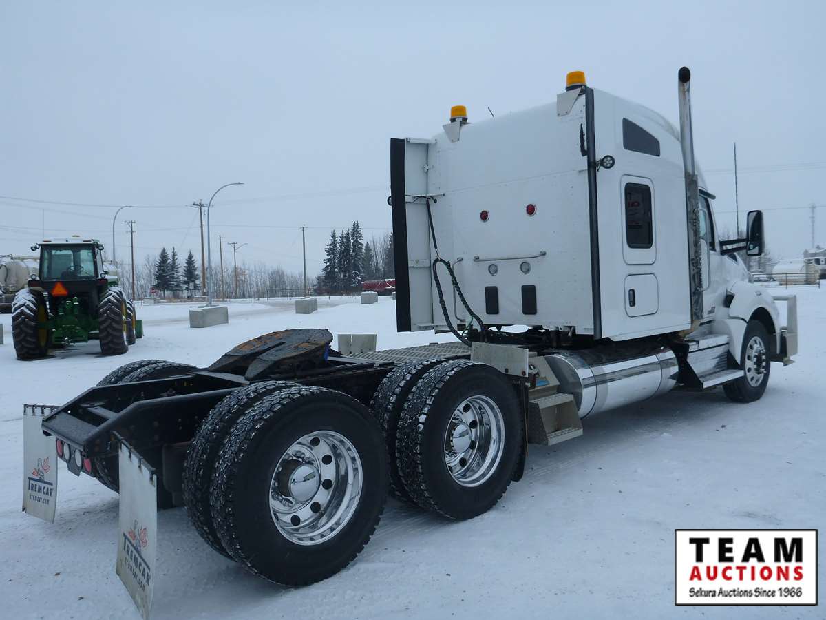 Cummins X15 500 HP engine, 18 speed Eaton transmission, 60" midrise double bunk sleeper, air ride suspension including front axle, 13,200 lb front axle, 40,000 lb rears, full lockers, Wabasto engine heater, beacon lights, front moose bumper, 11R24.5 tires, 624,416 kms, 10,677 hours, Alberta registered, registration on hand, current CVIP Feb 2021