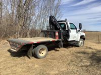 diesel engine, Allison auto transmission, 8,000 lb frt axle, 13,500 rear axle, A/C radio, 19.5" rubber trailer towing package, deck, hidden 5th wheel, Hiab 077/CLX picker, with Gardner Denver hydraulic system, all operators manuals, Alberta registered, copy of registration on hand