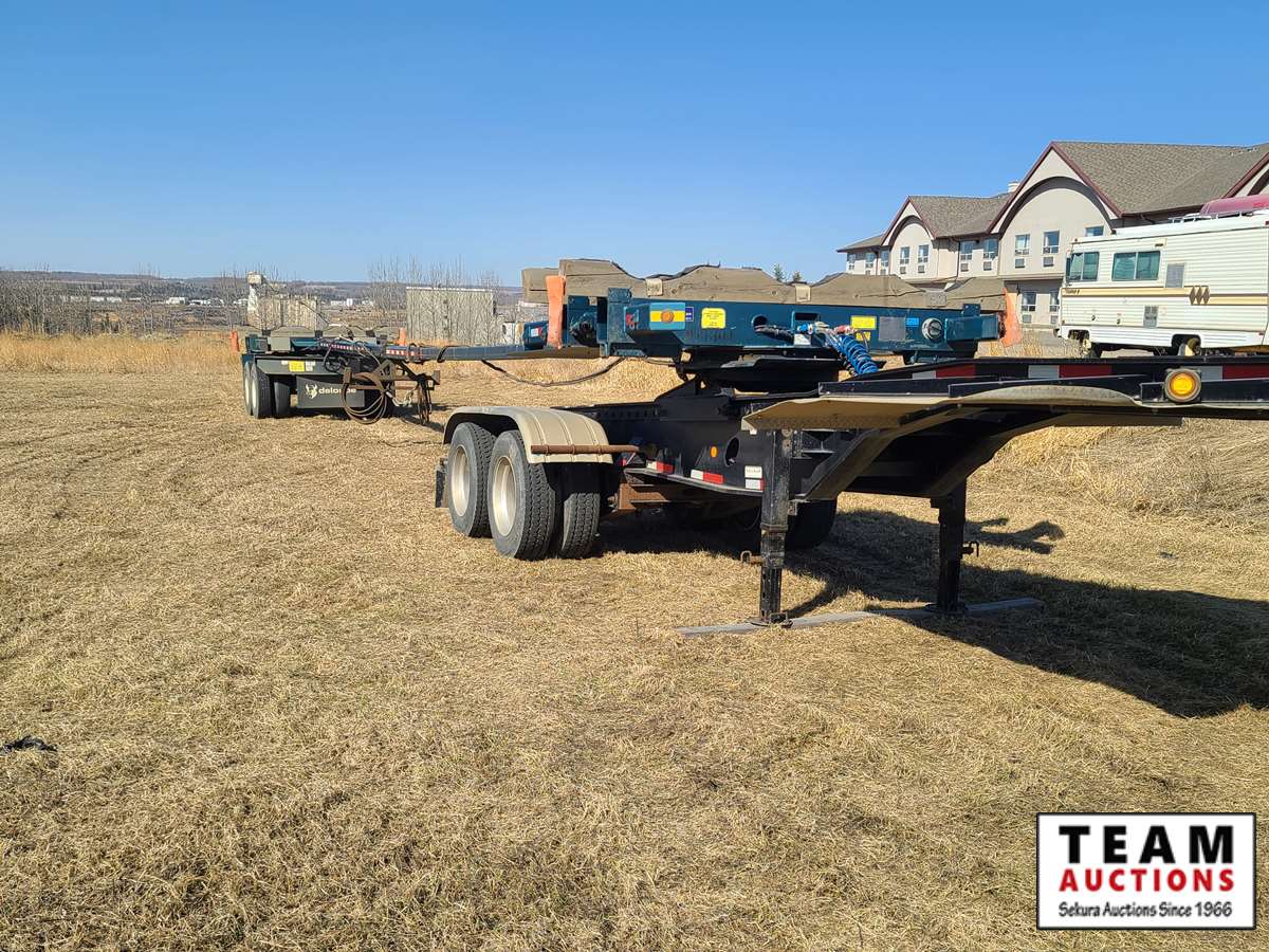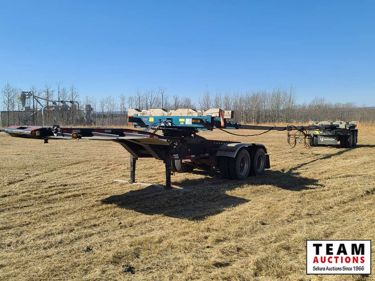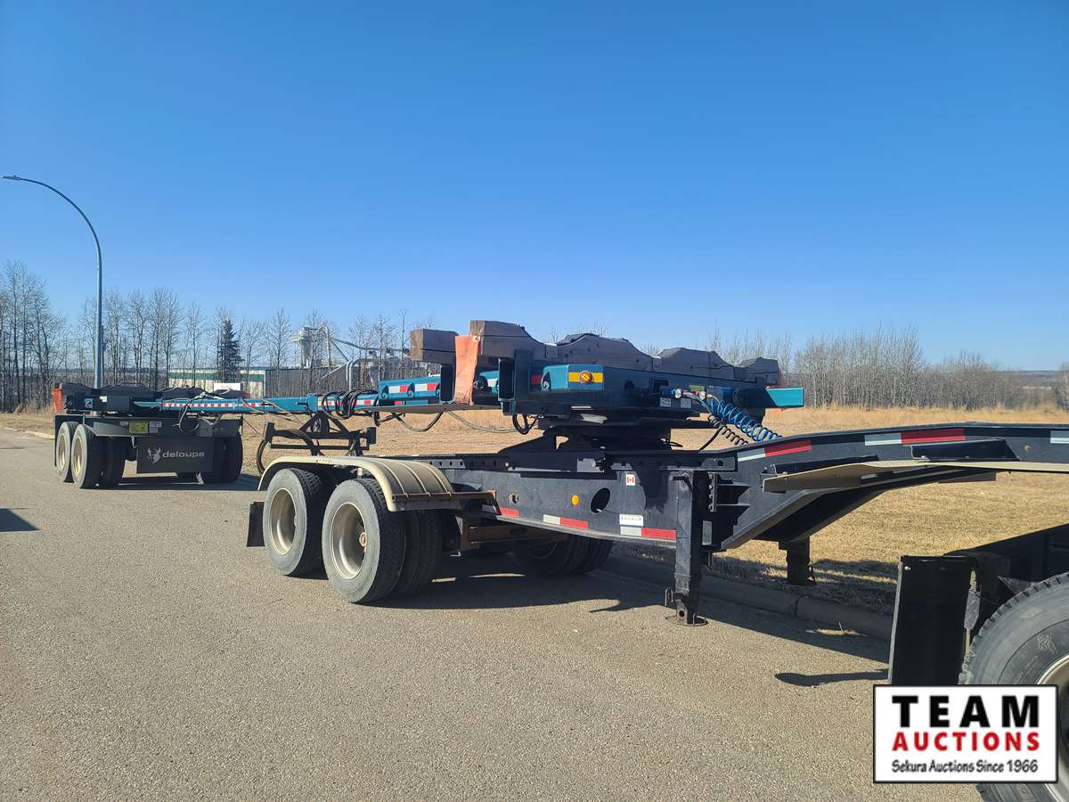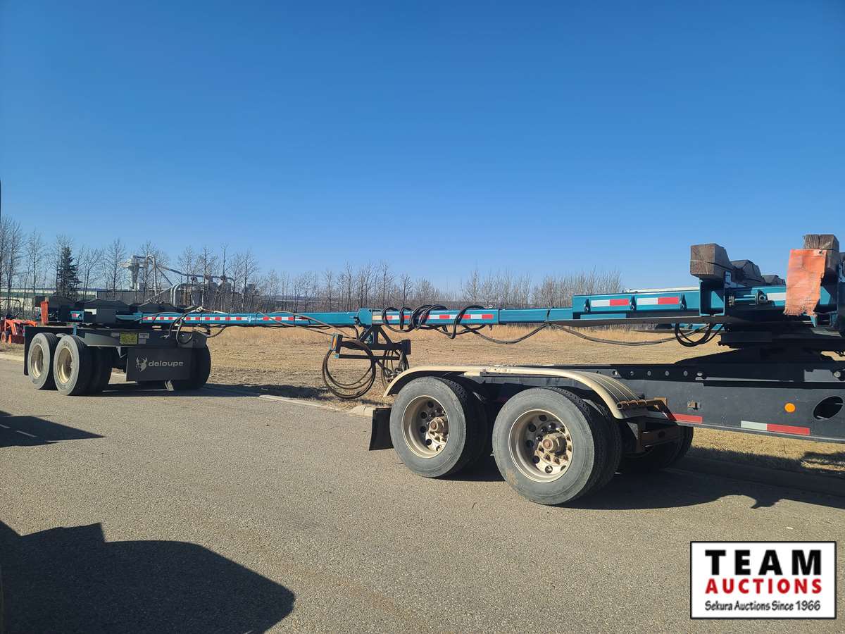 long track sliding 5th wheel,front and back fenders, air ride, 275/70R22.5 tires on aluminum rims, rear live roll, only 86,954 kms on unit, will sell with 2019 Deloupe pole trailer c/w rear turntable, telescopic adjustable pole, can haul up to 80 ft pipe. 11R24.5 tires, air ride suspension, 41.5 ft closed length and 66.5 ft open length. There are new AB CVIP's on both units. AB registered and copies of registration on hand.