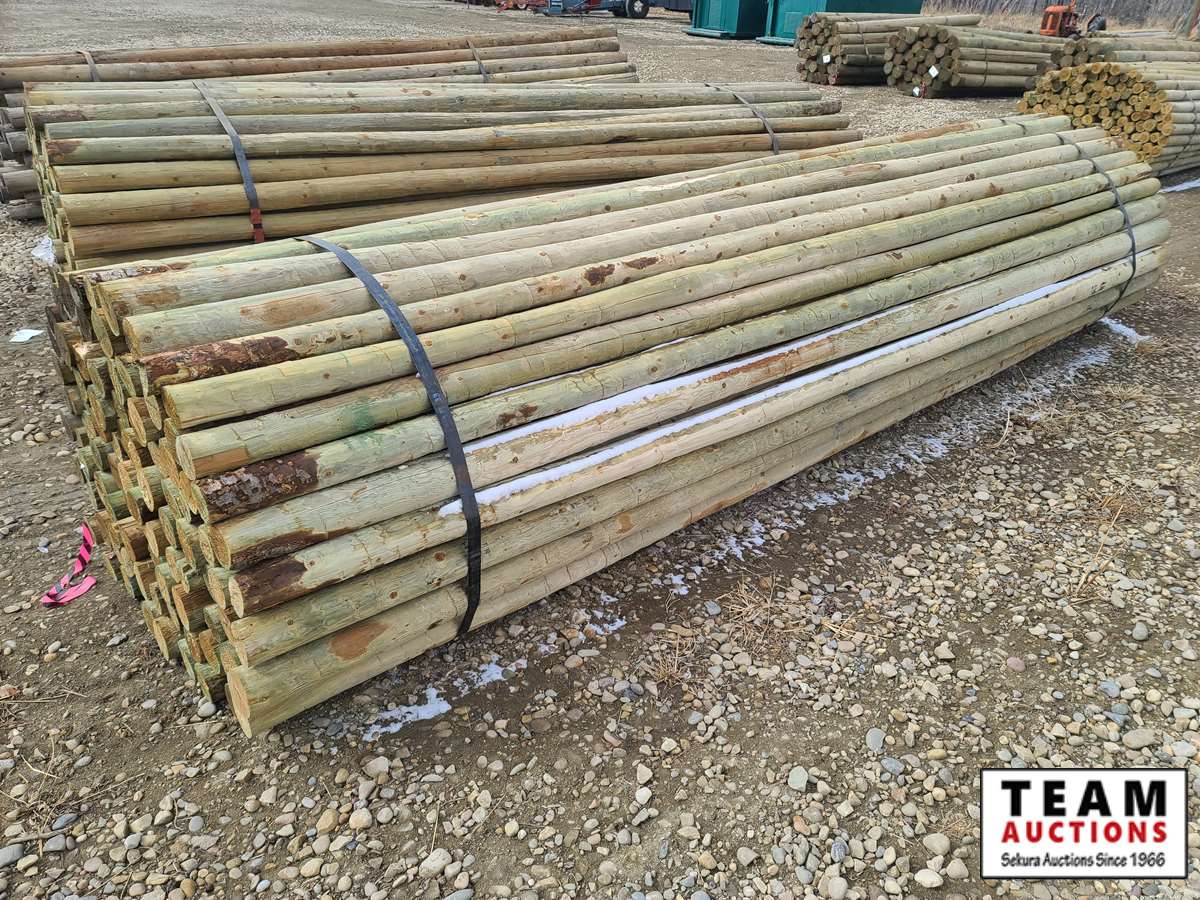 522 Qty of (100) 3" to 4" x 14' Treated Rails
