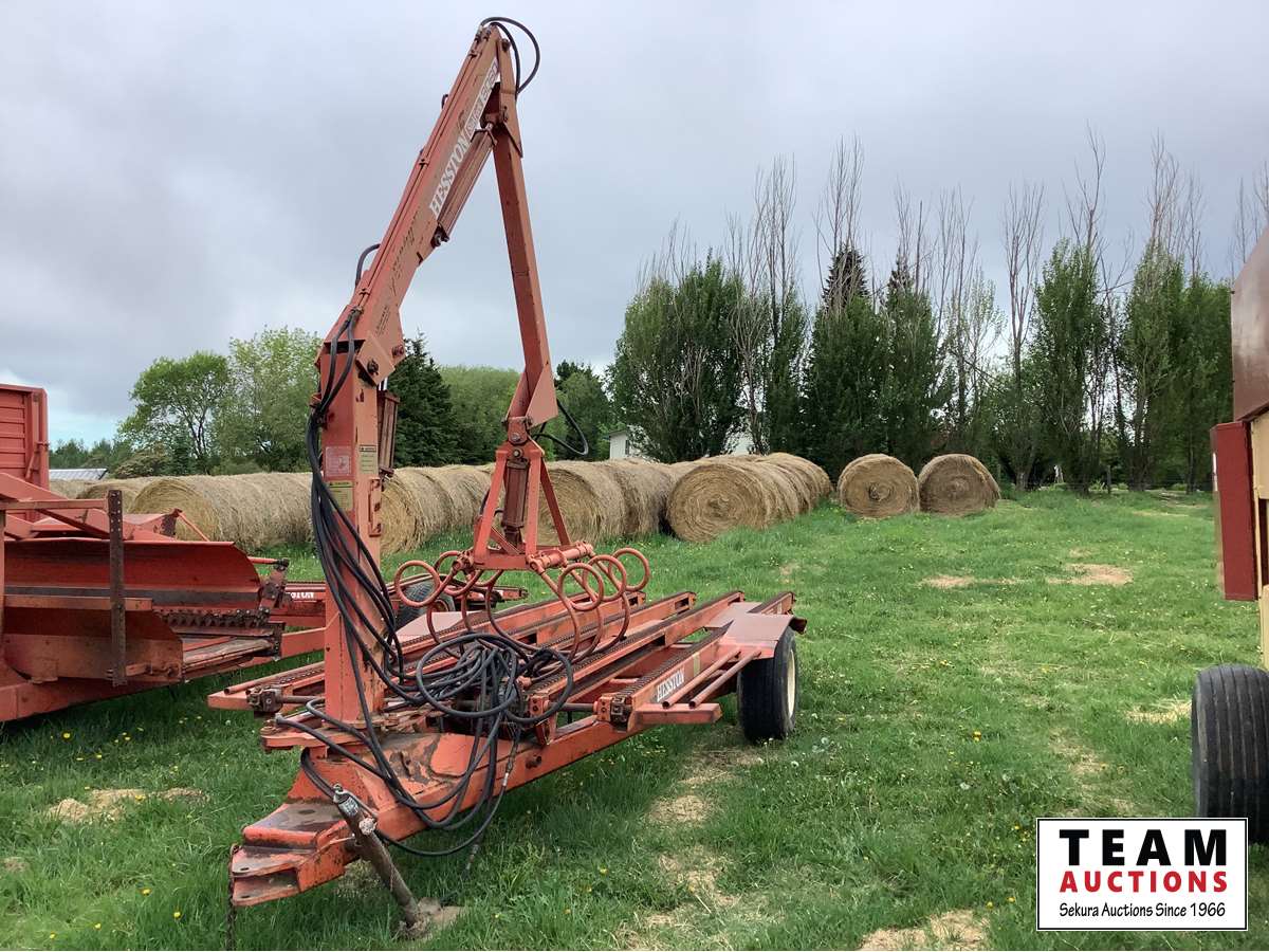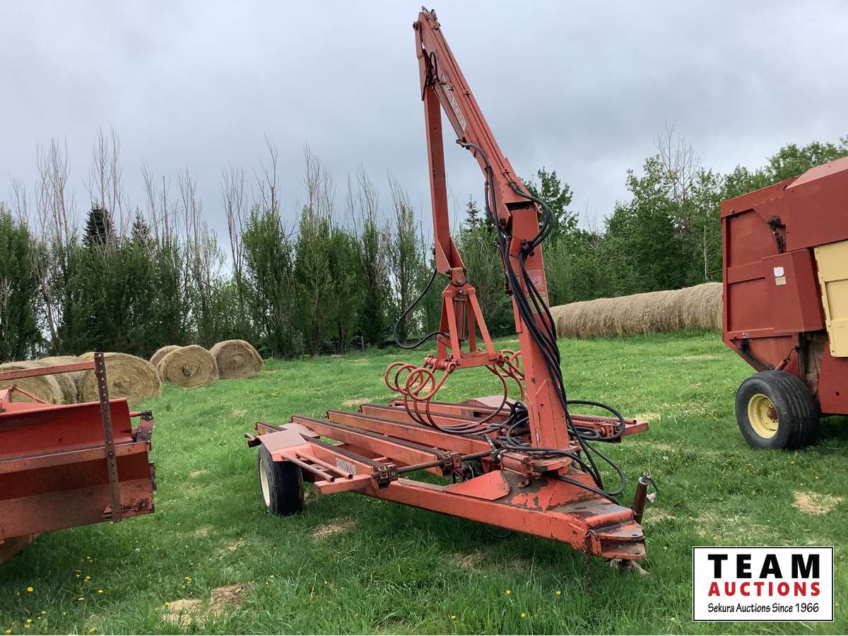This unit can lift the hay and drop as much as you want to feed as you move along. This can be used for multiple different jobs. In working order.