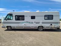 fridge, stove, microwave, dining table, (2) rocking chairs, Onan generator, queen bed, TV, cruise control, 100,921 kms showing