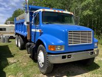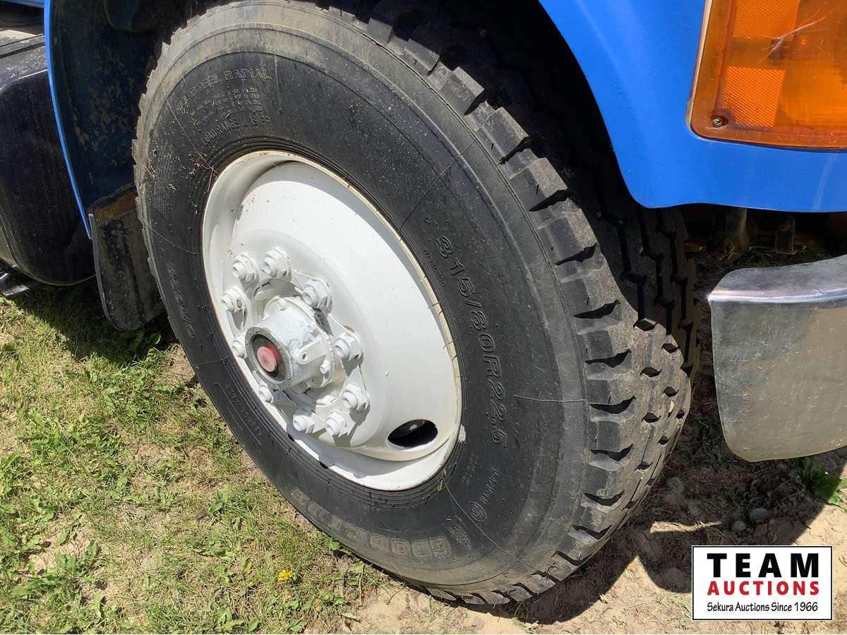DT International engine, 10 speed transmission, spring ride suspension, steel box and hoist, electric tarp, rear hitch plate, new 22.5" front tires, rear 22.5" tires