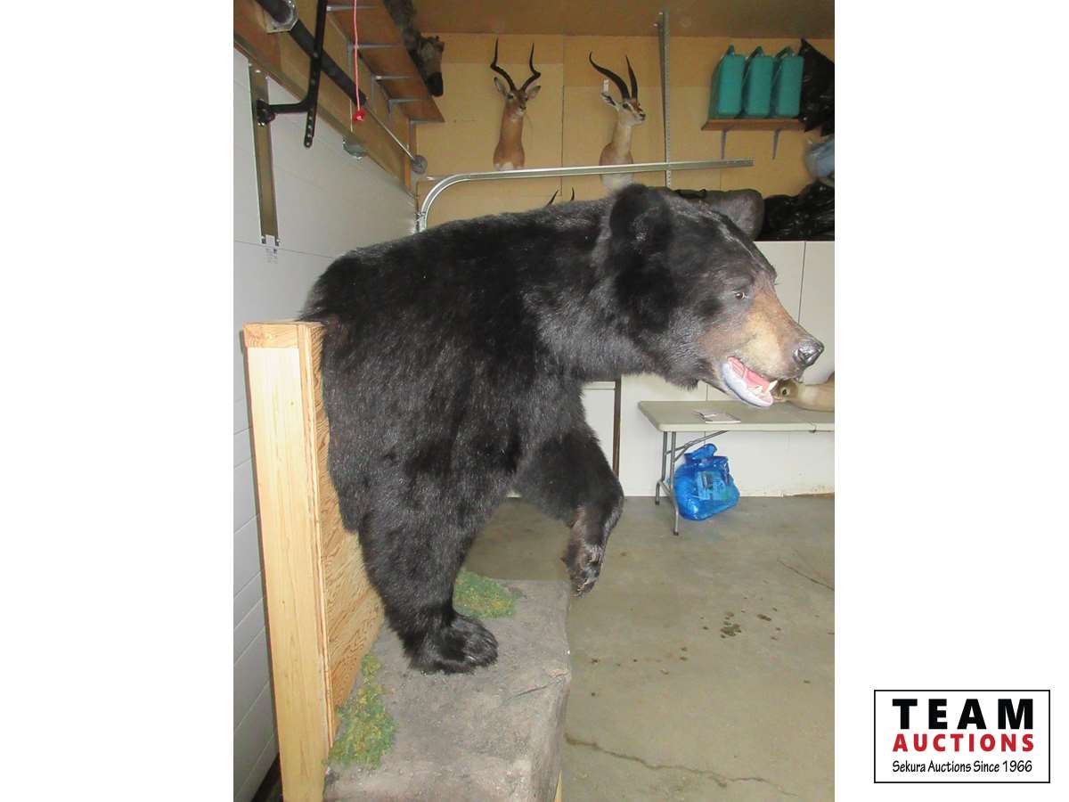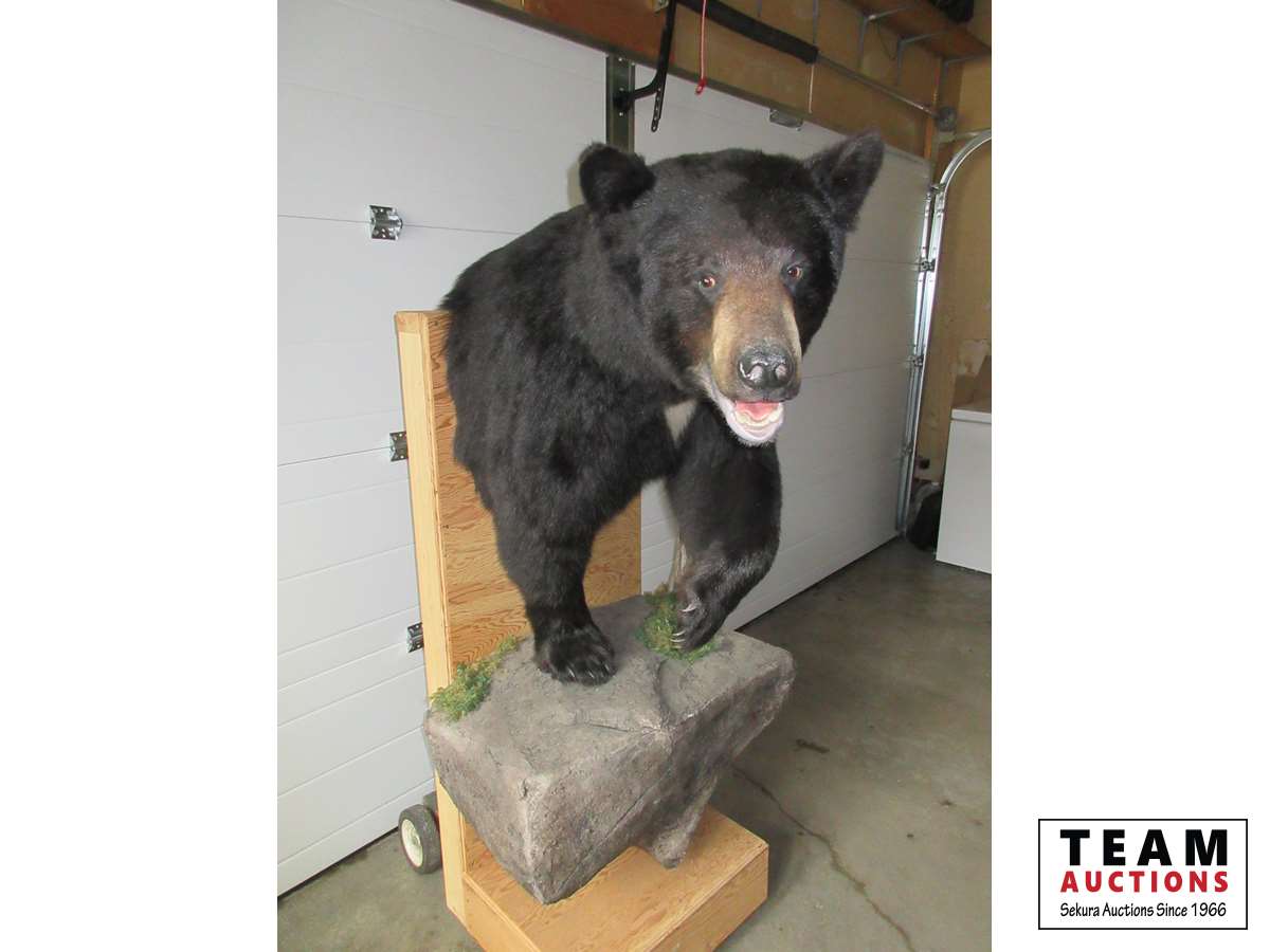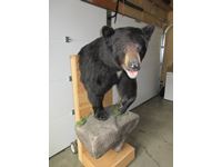 Professionally mounted by world champion taxidermist Ken Walker. Includes a DVD and book " The Bears Are Calling" featuring this bear. A great display to attract customers and tourists. This unique mount would compliment any collection. A wall mount standing on a rock.