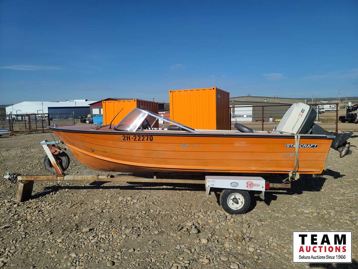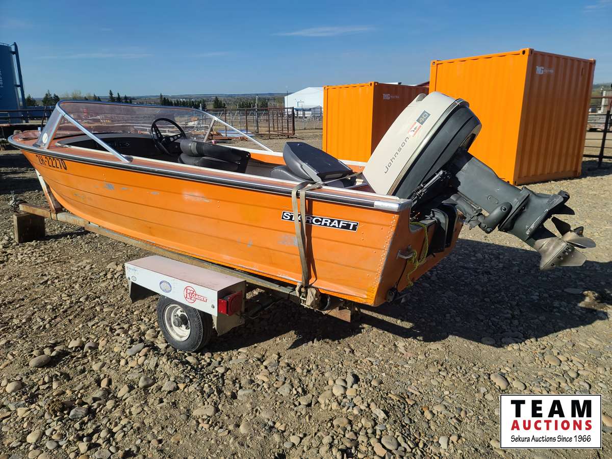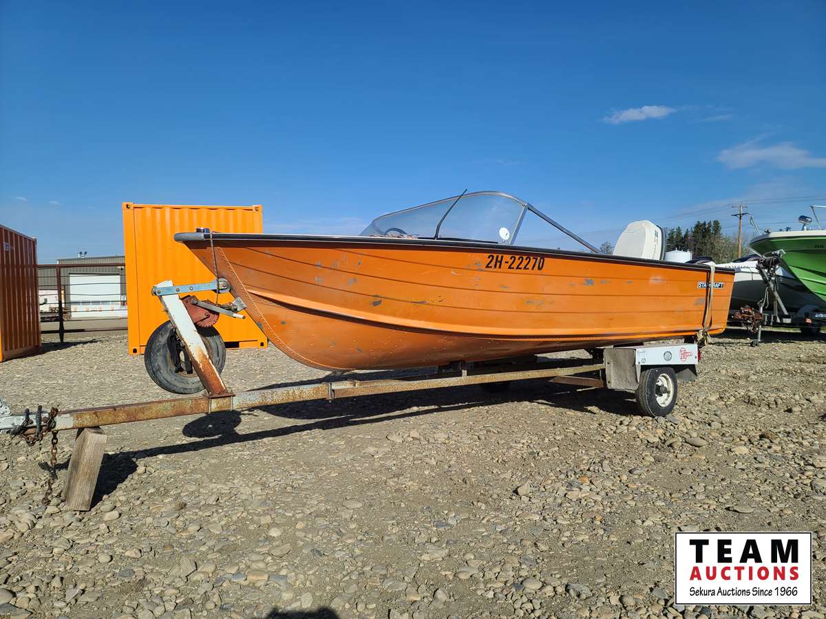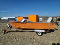 40 HP Johnson motor, electric start, newer swivel seats, CD player, carb overhaul, new tires, new bearings, new LED trailer lights, paddles, dip net, deep cycle 1 yr old battery, c/w 1971 EX-Loader trailer