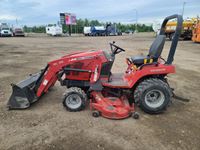 DL 100 loader, MF2325 mower, 4 ft bucket, 540 pto, hydrostatic transmission, 3 pt hitch, 18x8.5-10 front tires, 26x12.00-12 rear tires