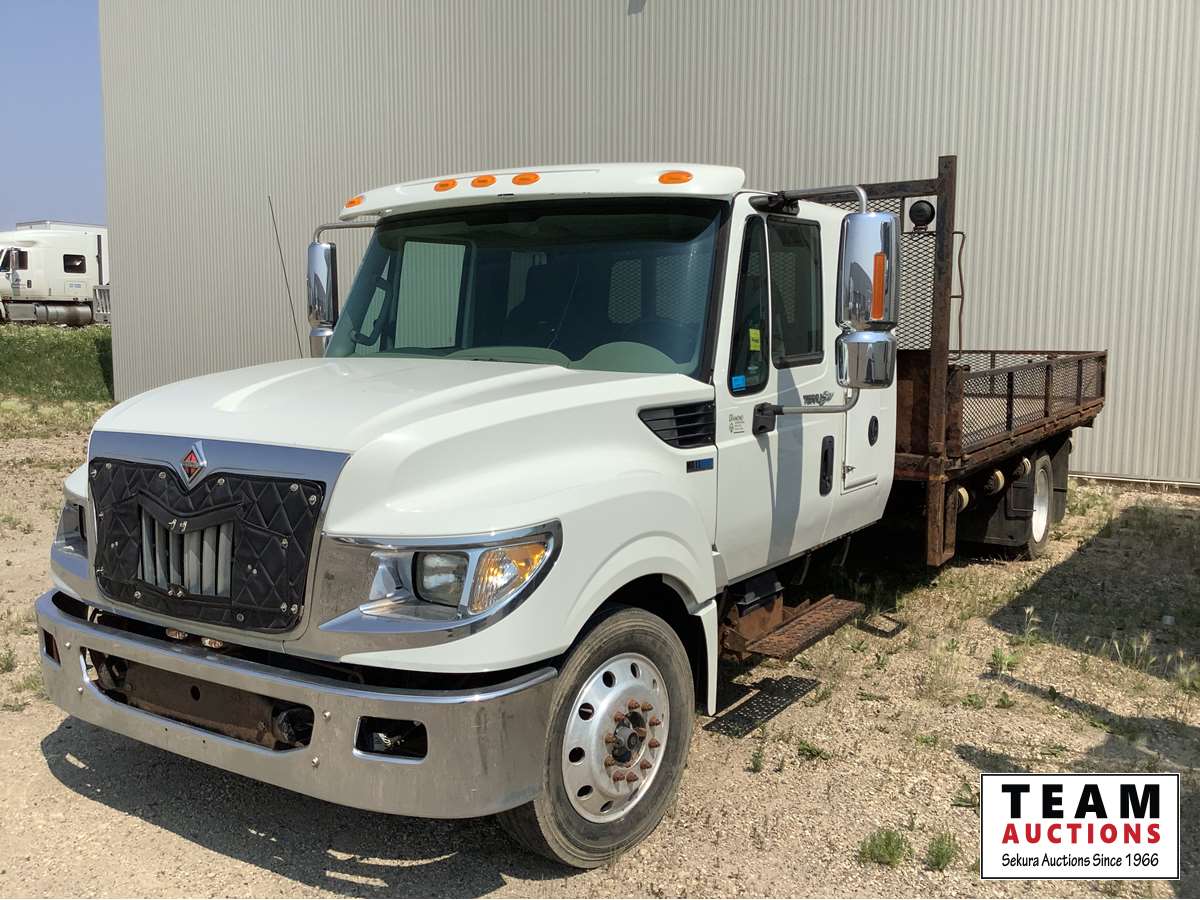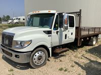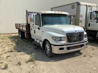 Maxxforce 7, 6 cylinder diesel, Allison automatic transmission, hydraulic brakes, AC, radio, deck has fold down sides, tool box, all aluminum rims, 225/70R19.5 tires