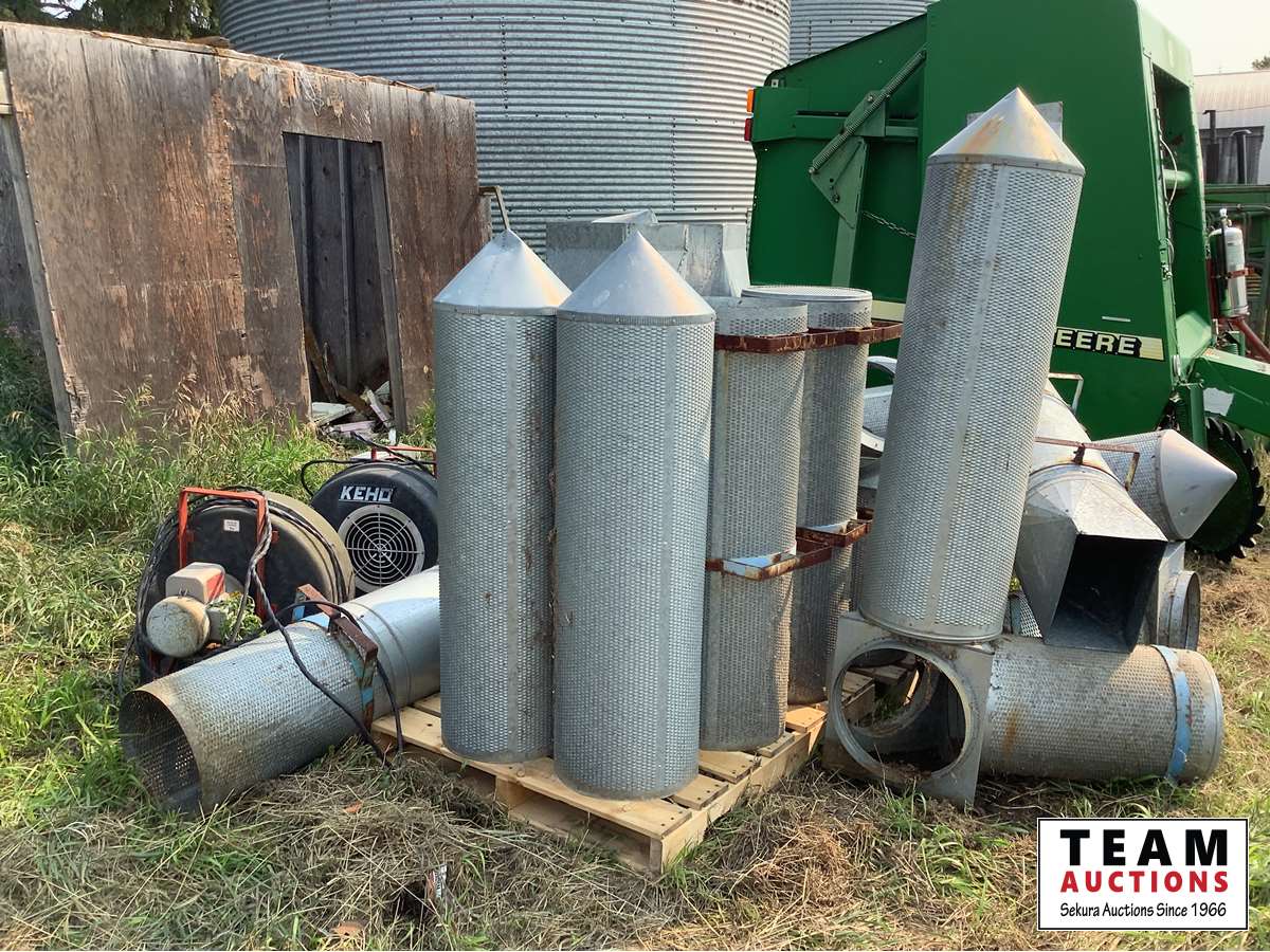 Assortment of aeration tubes, Keho 3 HP aeration fan, 5 HP Keho aeration fan