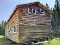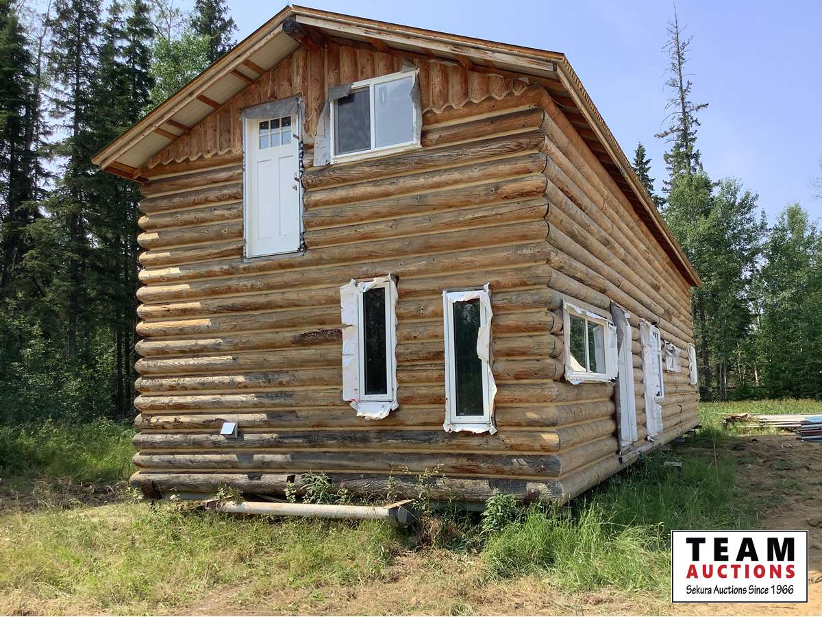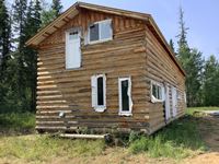 Built 6 years ago with spruce logs, all wiring installed up to breaker box, new Armstrong furnace & ducts installed, plumbing roughed in with shower base & Jacuzzi tub, Kuhltech windows and 2 inch foam insulated roof panels and floor with same 2 inch insulation, all doors are installed and chinking in logs. Main floor plan (2) side entry doors, furnace room, (2) bedrooms with shower base and Jacuzzi tub, office area, open kitchen and living room area, pantry, sliding door deck access. Upper floor plan, (2) bedrooms with one at each end with bathrooms and upper deck access from one. There is (4) Bedrooms and (3) bathrooms in this plan.