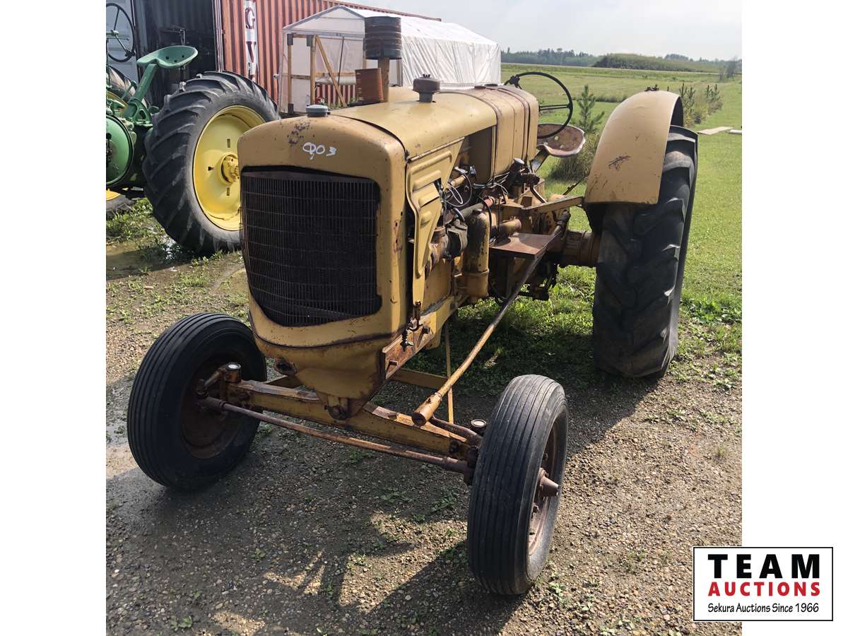 4 cylinder, gas, 5 speed, hand clutch, 540 PTO, belt pulley, 6.50-16 front & 14-30 rear tires
