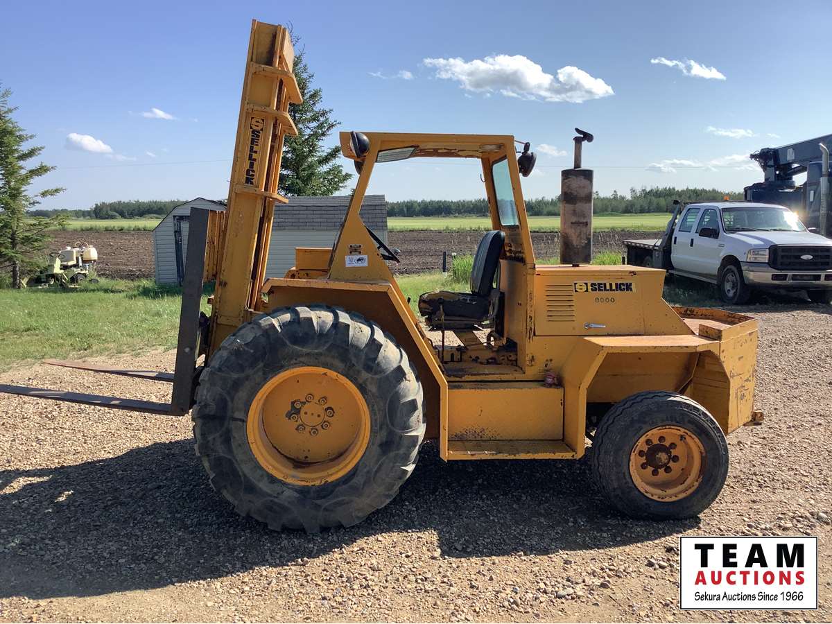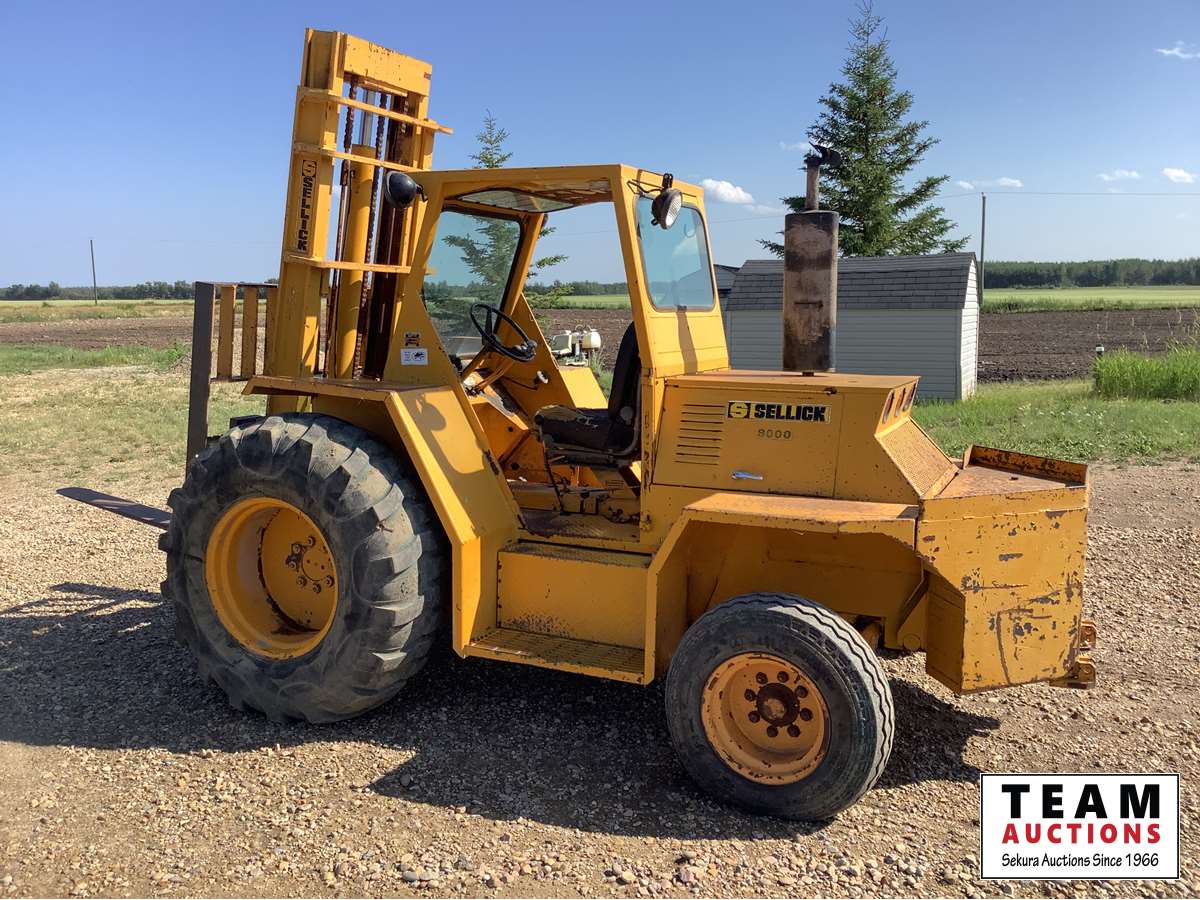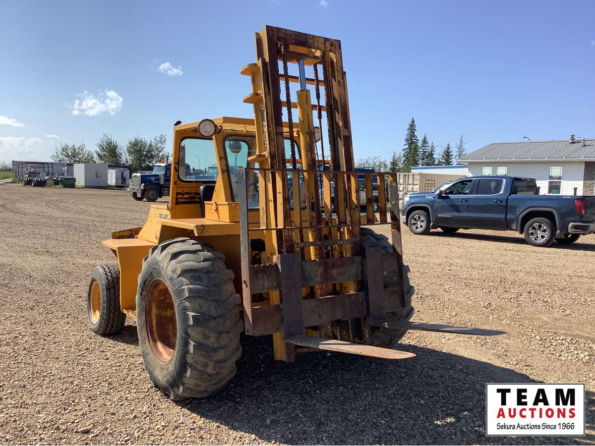 3 cylinder diesel engine, power shuttle shift forward and reverse transmission, 2 stage 14 ft mast height, 8000 lb capacity, good front tires and new rear tires