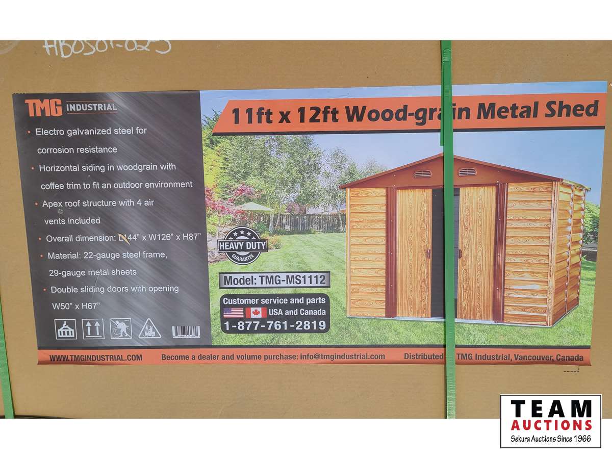 36 TMG Industrial 11 Ft X 12 Ft Wood-grain Metal Shed (Unused)