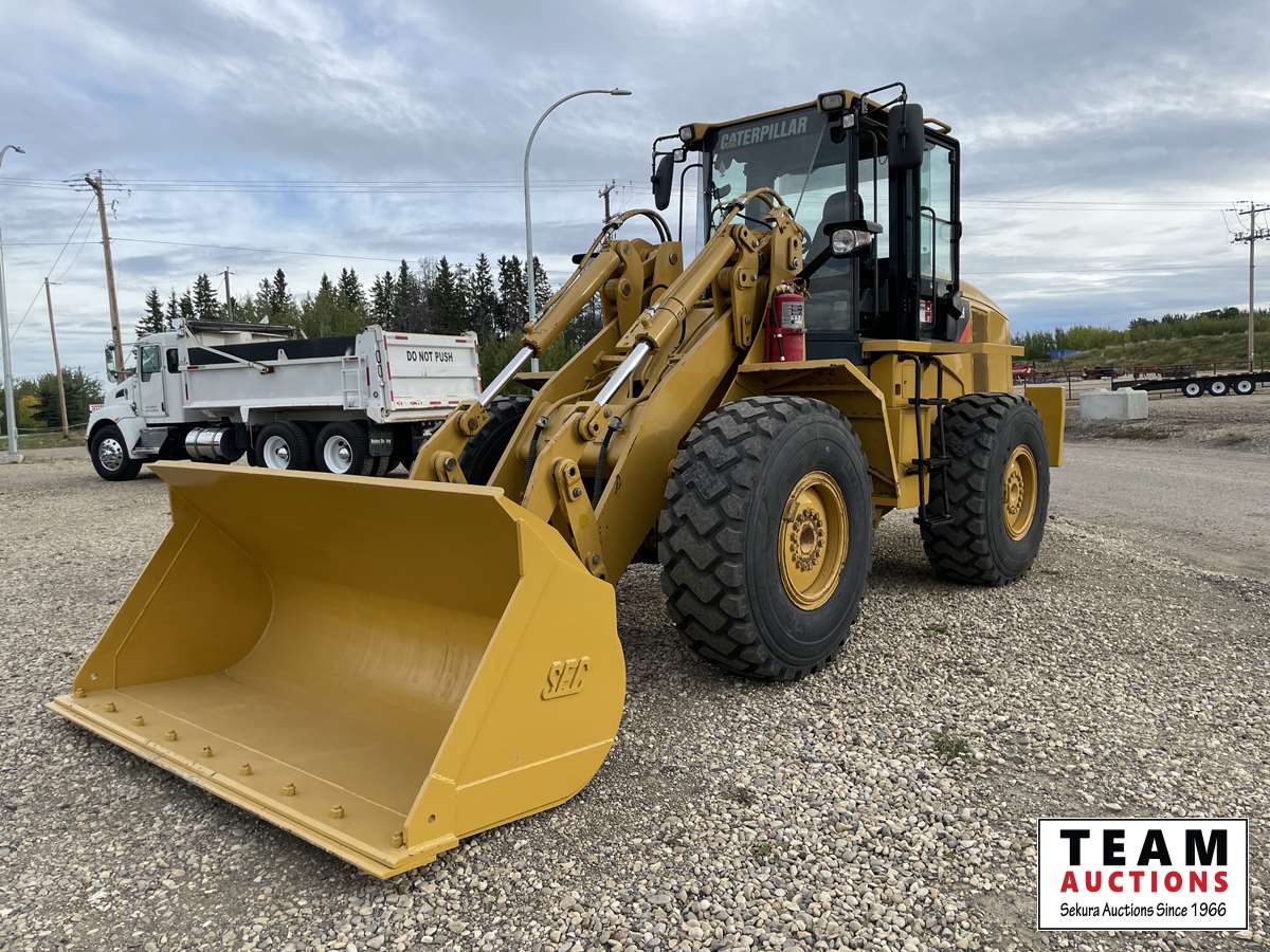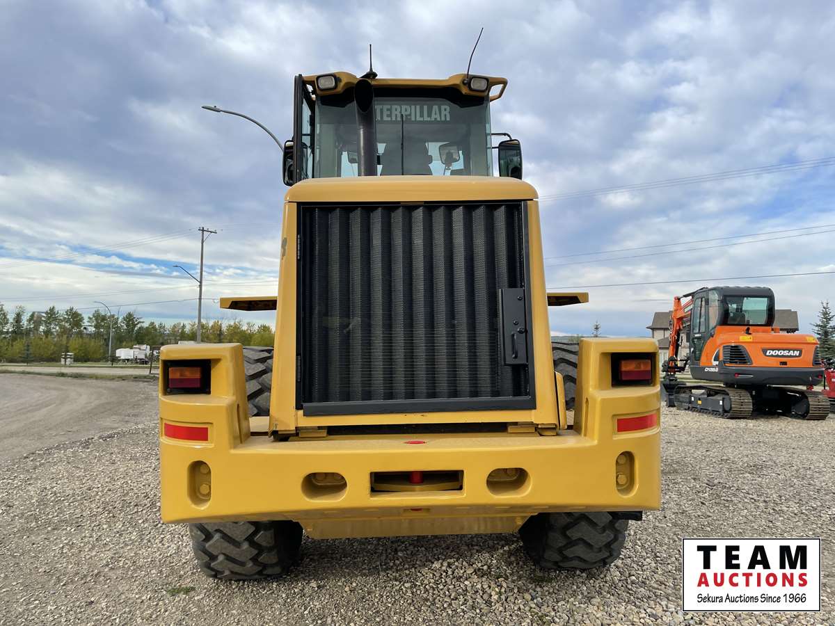 Caterpillar Acert 6.6 L engine no DEF, 4 speed transmission, aux hydraulic, A/C, heater, radio, Q/A bucket, new 20.5 R25 tires