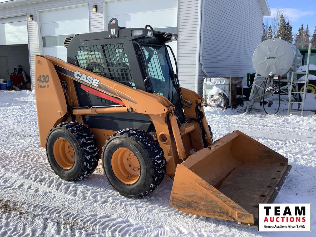 This is a one owner, skid steer with only 523 original hrs that has been kept inside a heated shop. Was mainly used for moving bales in winter so the bucket was hardly used. This is the cleanest Case 430, skid steer you will find. This skis steer was purchased new in Oct of 2010.
