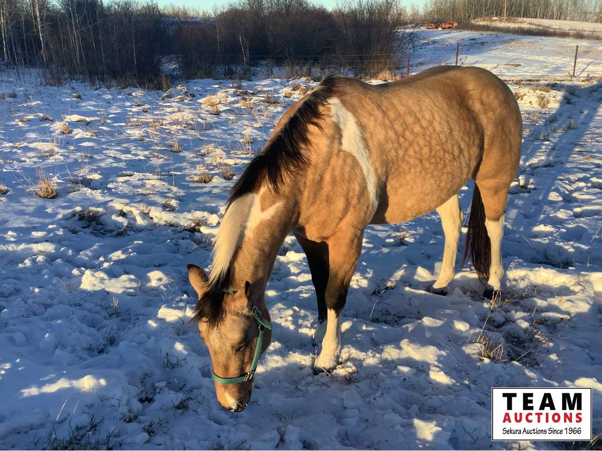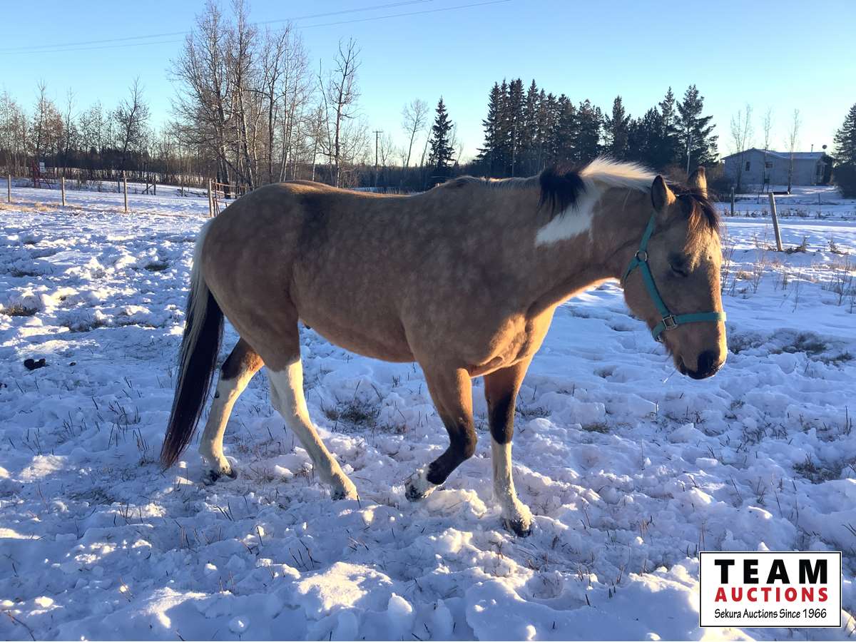 This horse is the best friend you could ever want. He does not like a saddle on his back and will buck you off when he has had enough. We are selling this horse for a elderly gentleman who is selling his farm and equipment. He is real friendly as you can see in pictures.