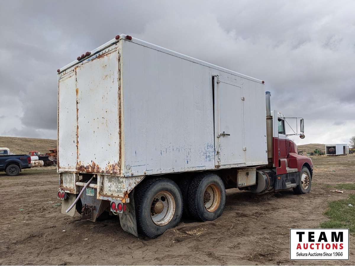 Cummins L10, 300 HP, 6 cylinder, diesel, engine brake, Eaton Fuller RT11613 13 speed, Neway Air ride suspension, 12000 lb front, DS402 40000 lb rears, 3.55 ratio, 235 inch WB, 20 ft ITB Van Body, s/n ITB77499457259, 2000 Saskatoon OTS.020H 20 HP boilder, s/n 4029, 2000 SDMO 9 kW generator, s/n TM011S2 M -01Z/2371275-06, 1 ph, 120/240 v, 3 cylinder, diesel, 3785 litre galvinized water tank, 11R22.5