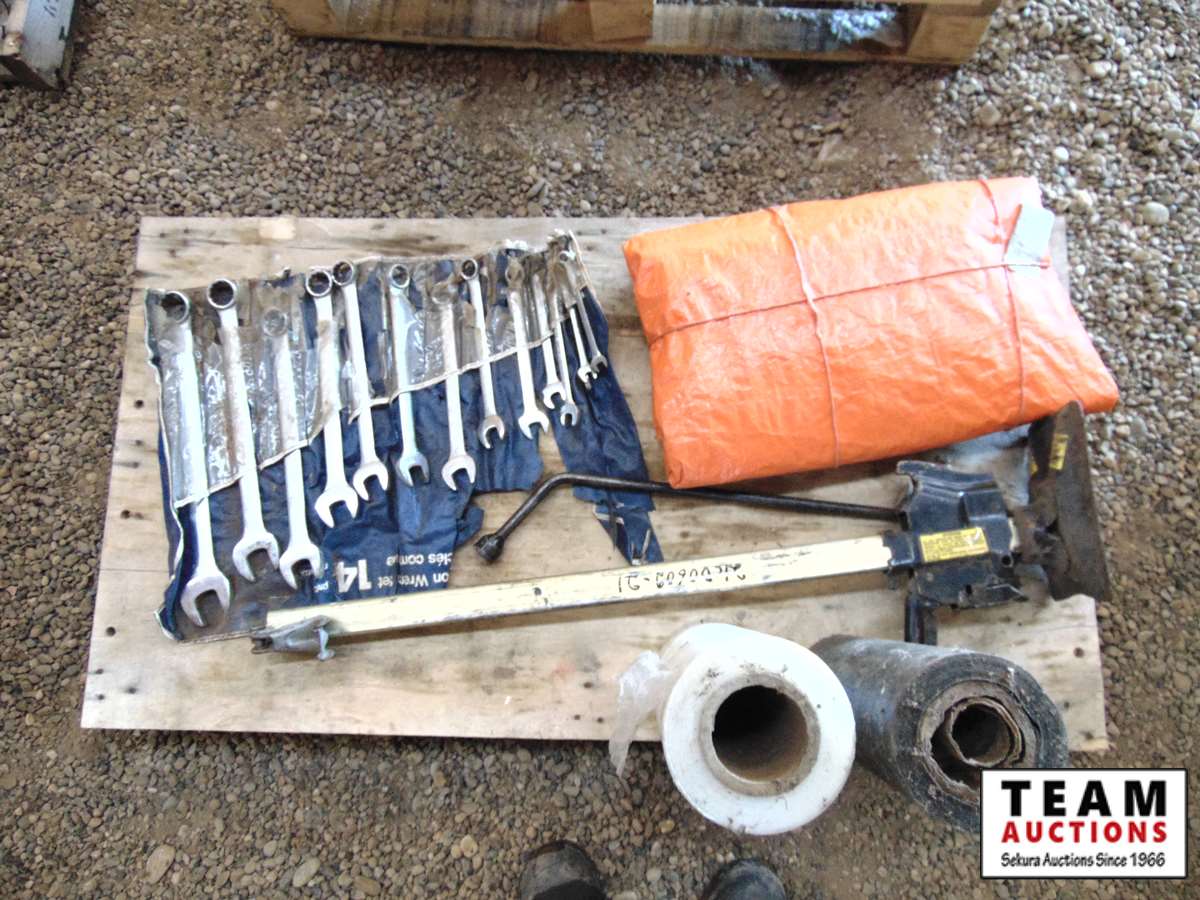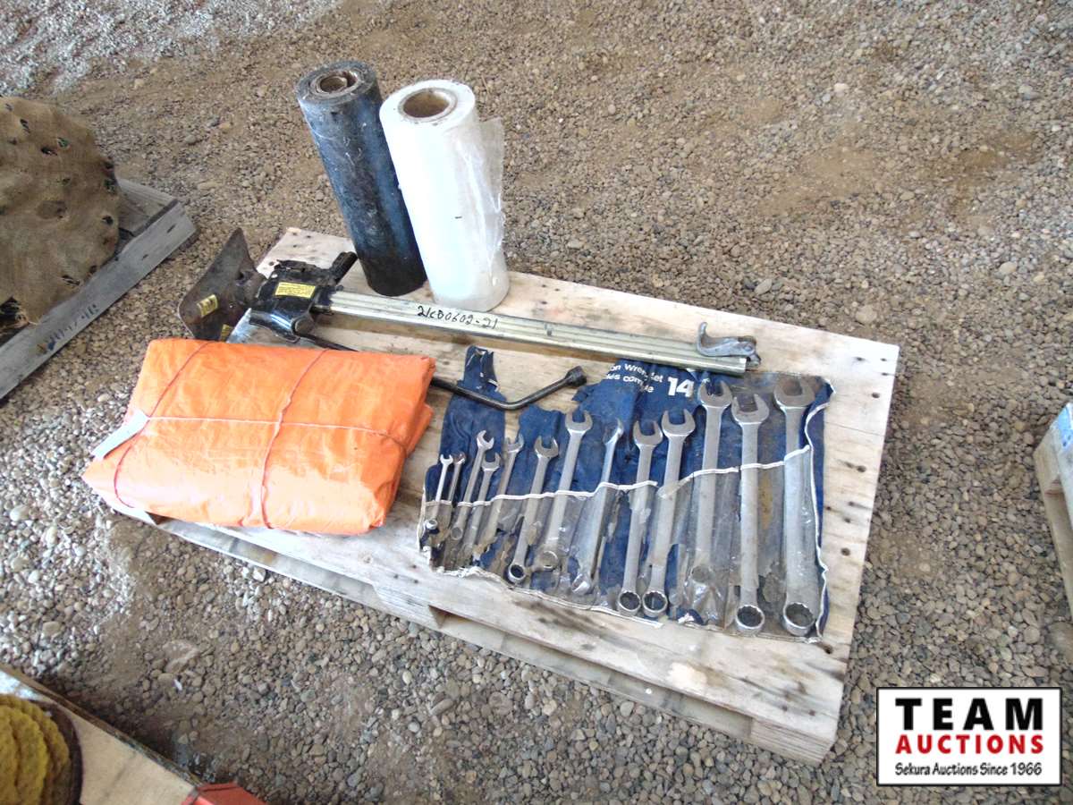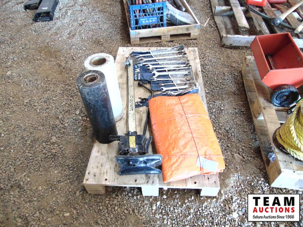 31 Pallet with Bumper Jack, Tarp, Plastic Rap, Full Set of Open End/Box End 3/8-1 1/4 in Wrenches