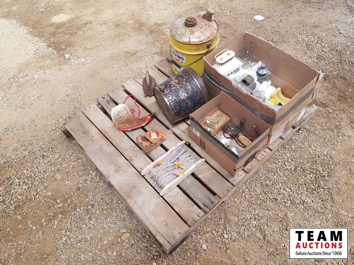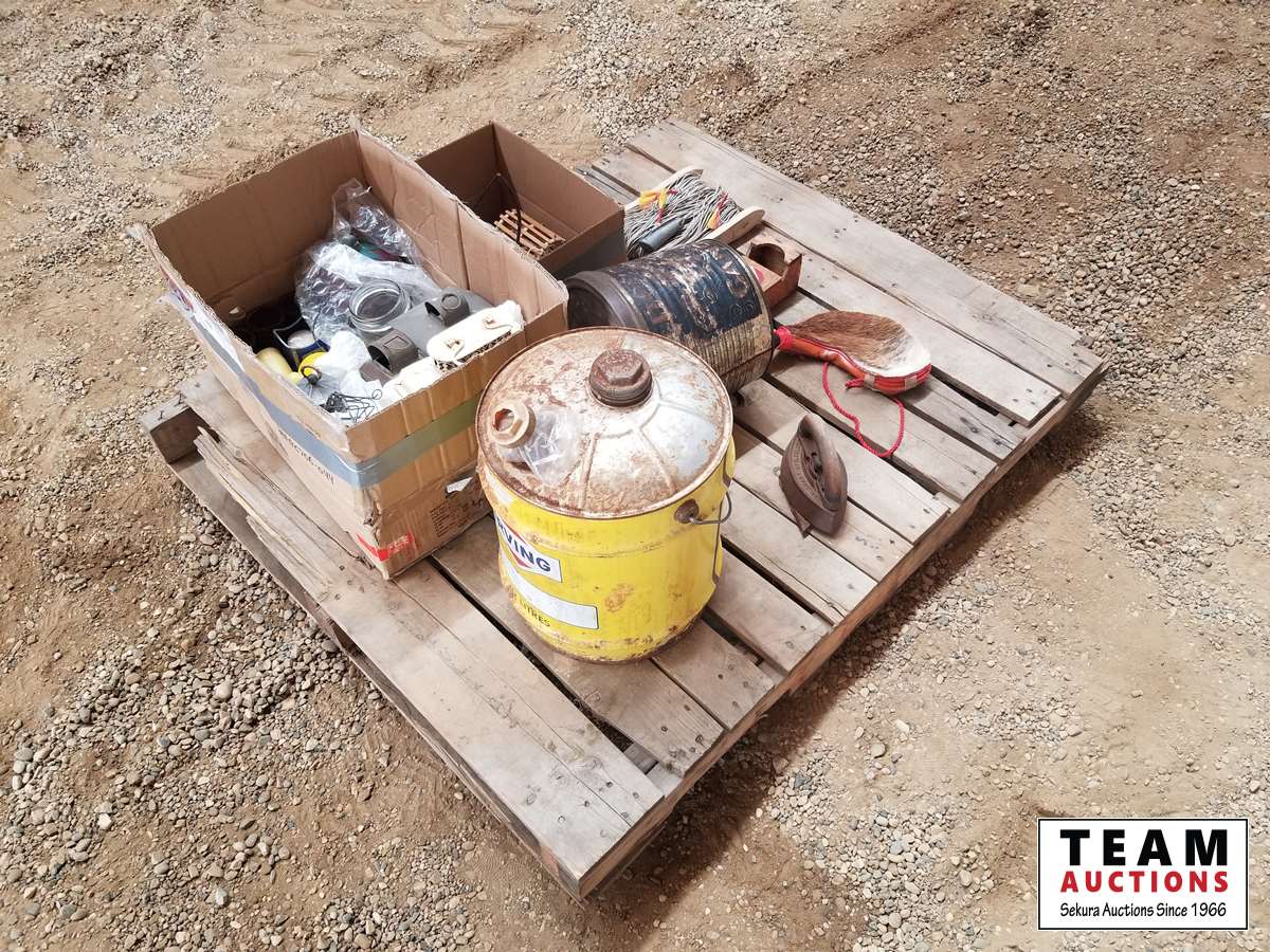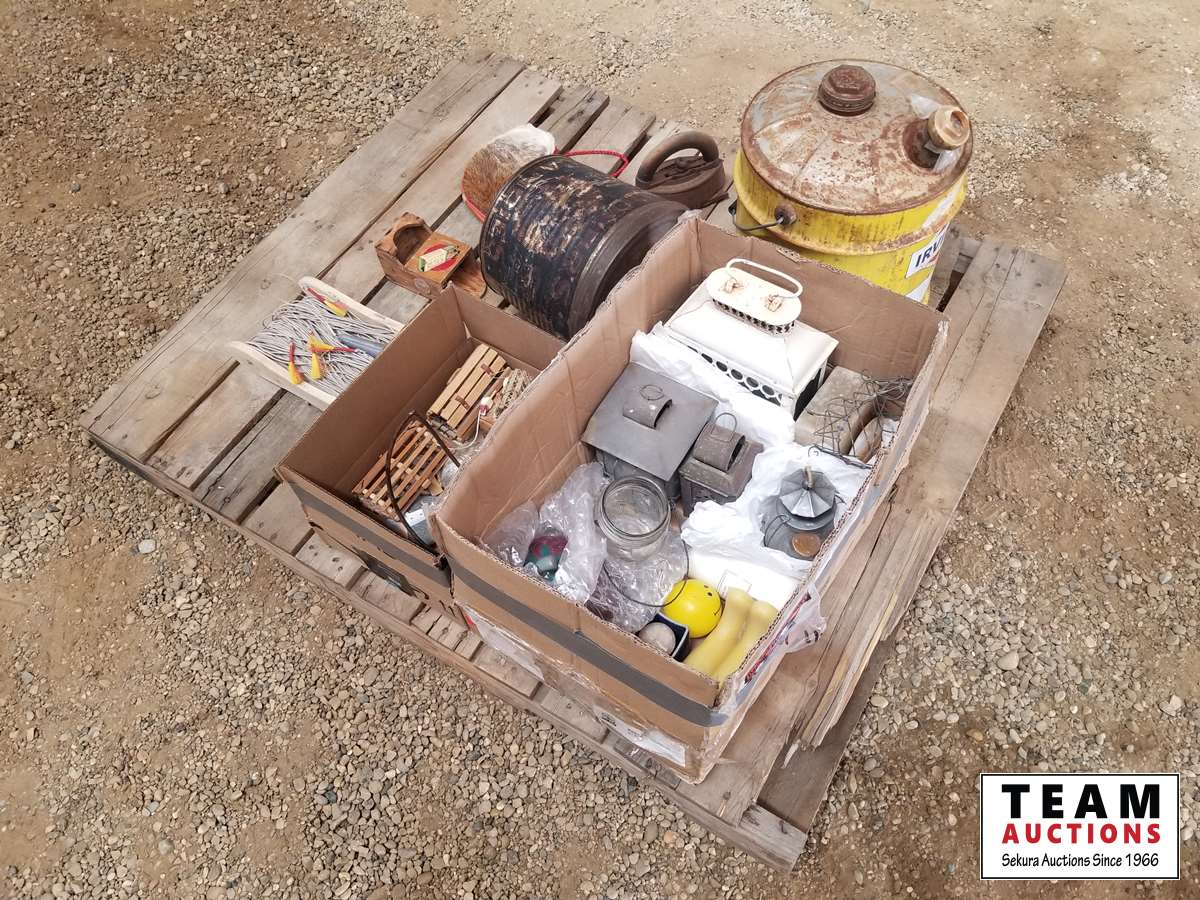 303 Candle Holders, Sad Iron, Antique Candy Can, Cod Jig, 20 Litre Gas Can & Misc