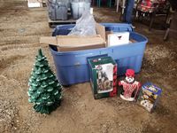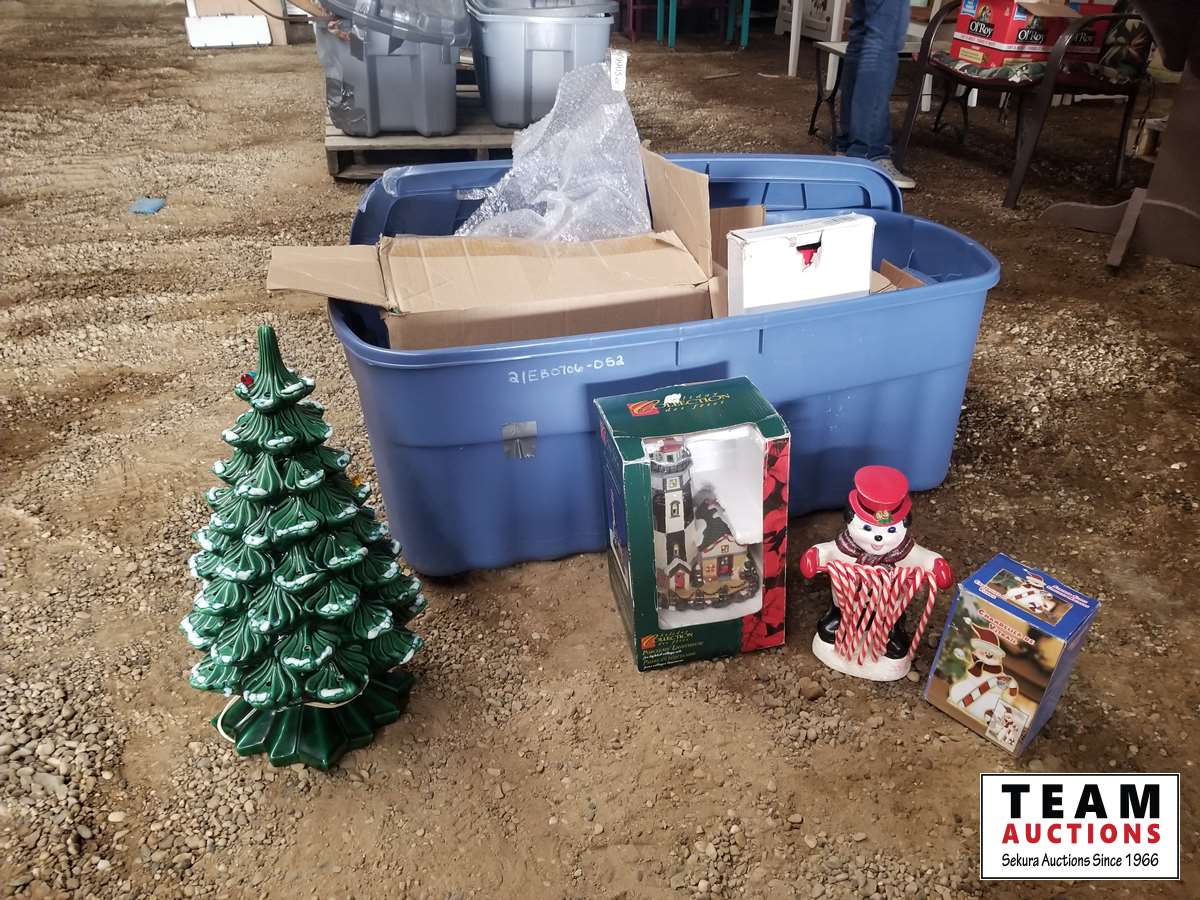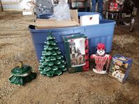 Extra Large Tote With Vintage Ceramic Christmas Tree, Porcelain Light House, Ceramic Snowman, Ceramic, Christmas Figurines, Misc