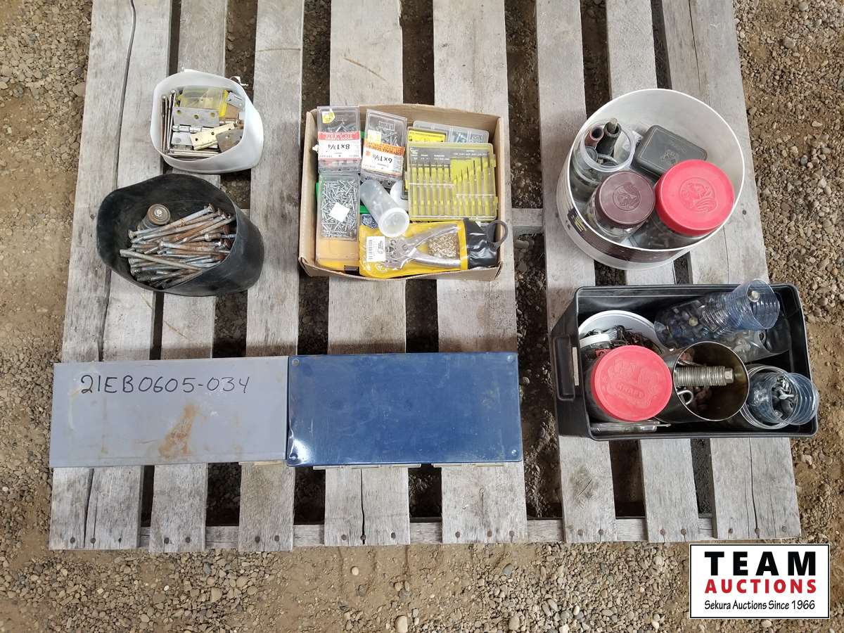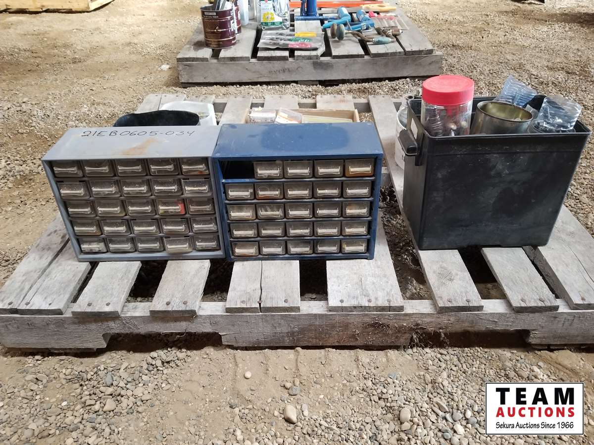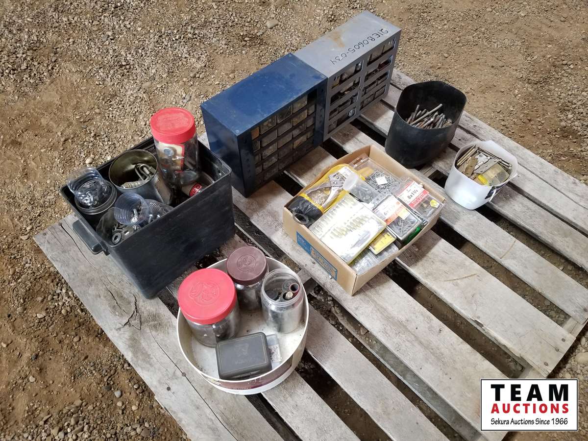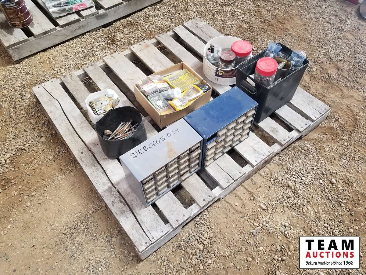 396 Pallet of (2) Small Bolt Bins & Lots of Misc Bolts & Screws
