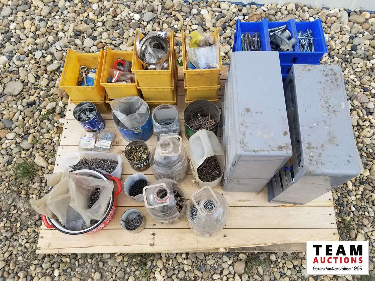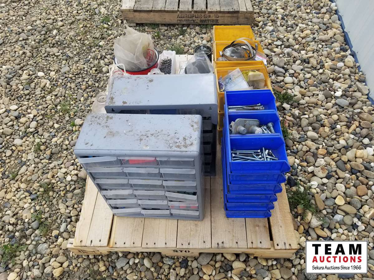 355 Pallet of Bolt Bins with Nail, Screws, Bolts, Nuts & Misc