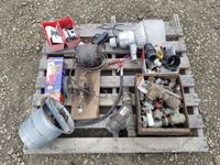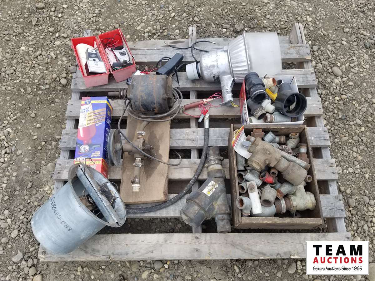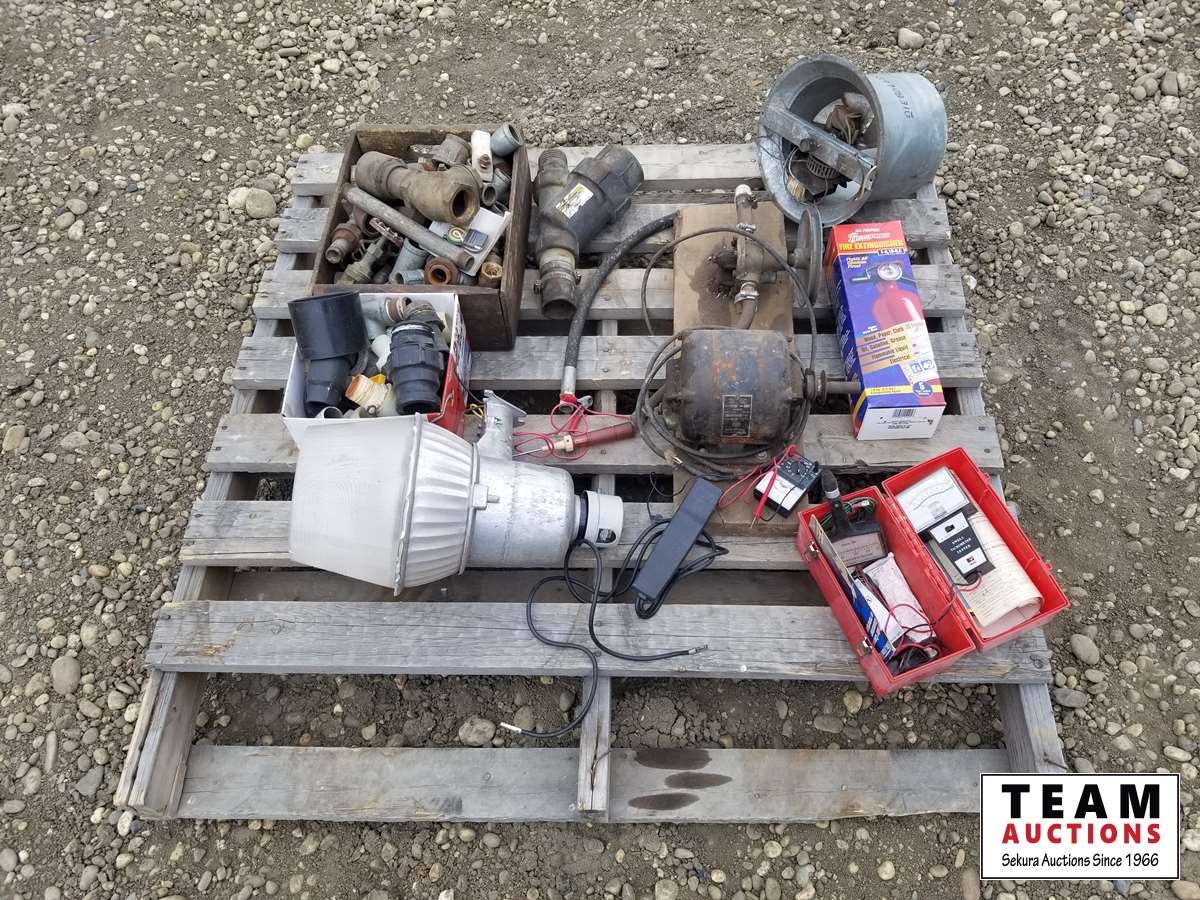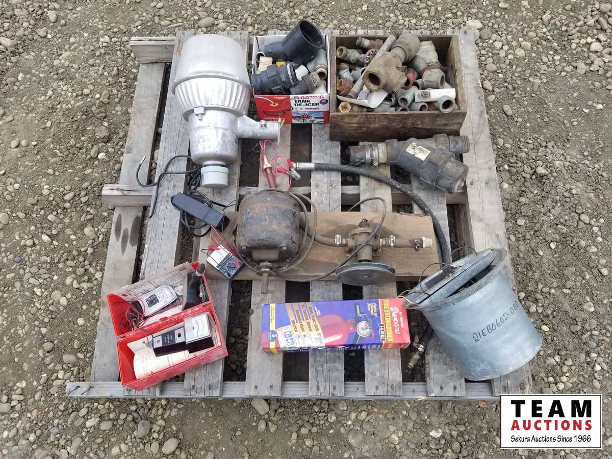 347 Pallet of Misc Water/Propane Fitting, Electric Motor, Fire Extinguisher, & Various Electric /Pressure Testers