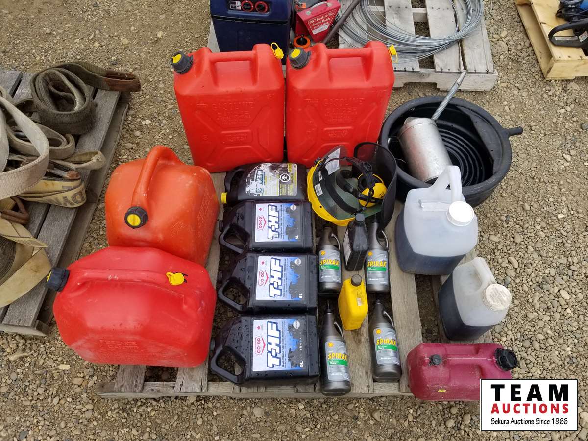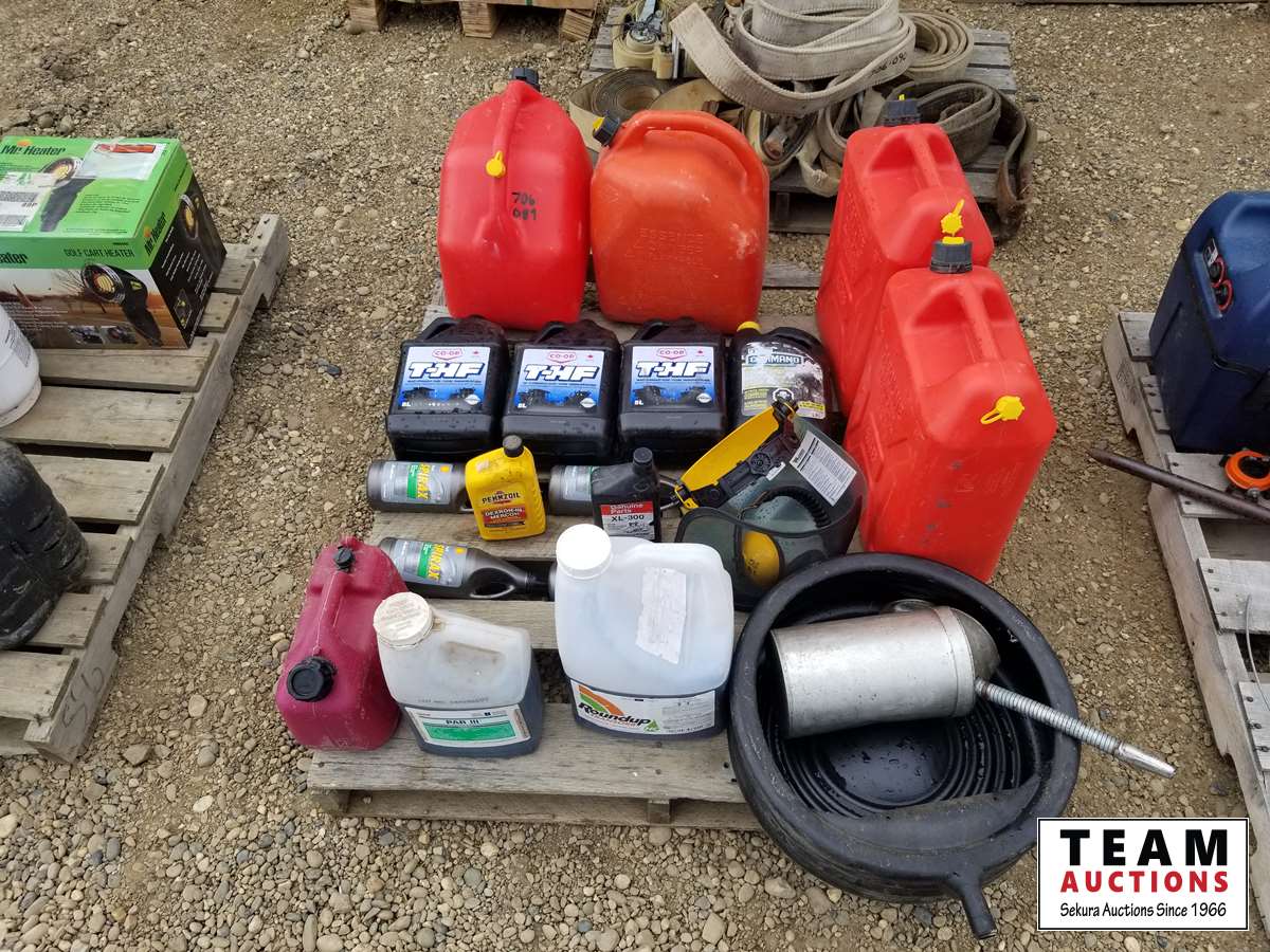 388 Pallet of Oil, Jerry Cans, Par 3 & Round Up