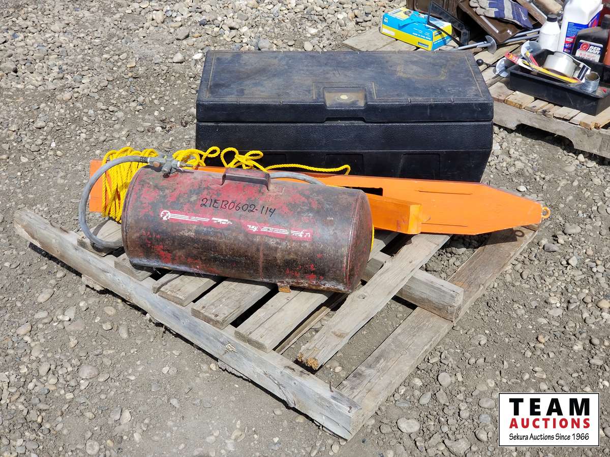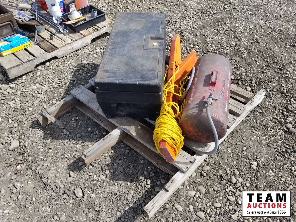 372 Pallet of Plastic Tool Box, Tire Patches, Tools & Air Tank