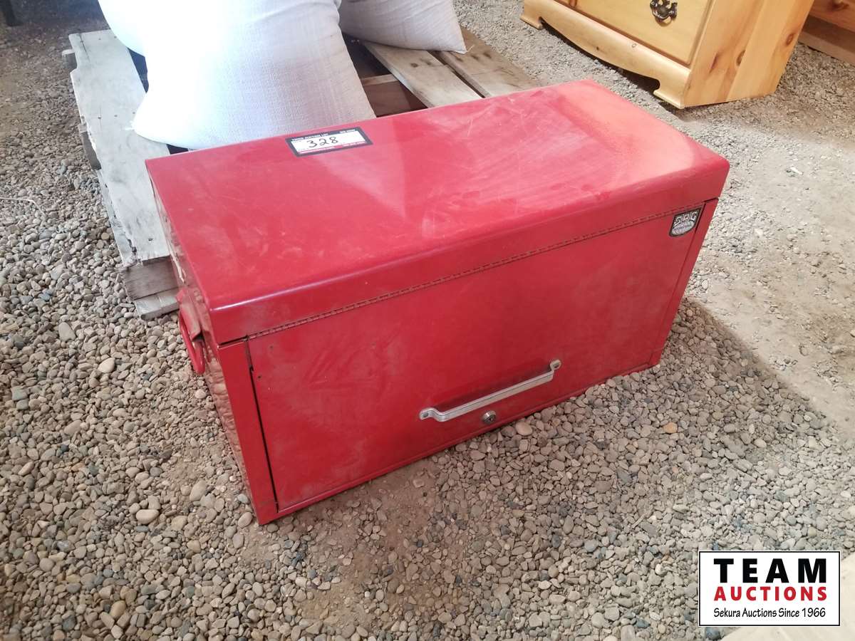 328 Red Steel Tool Box With Misc Tools