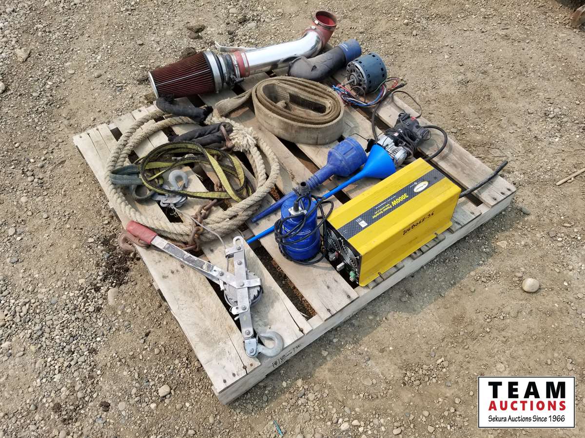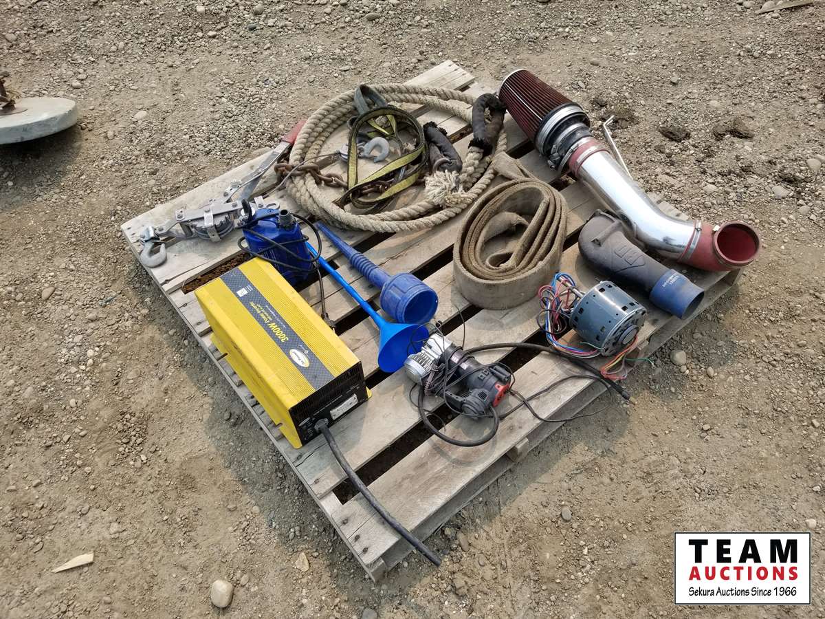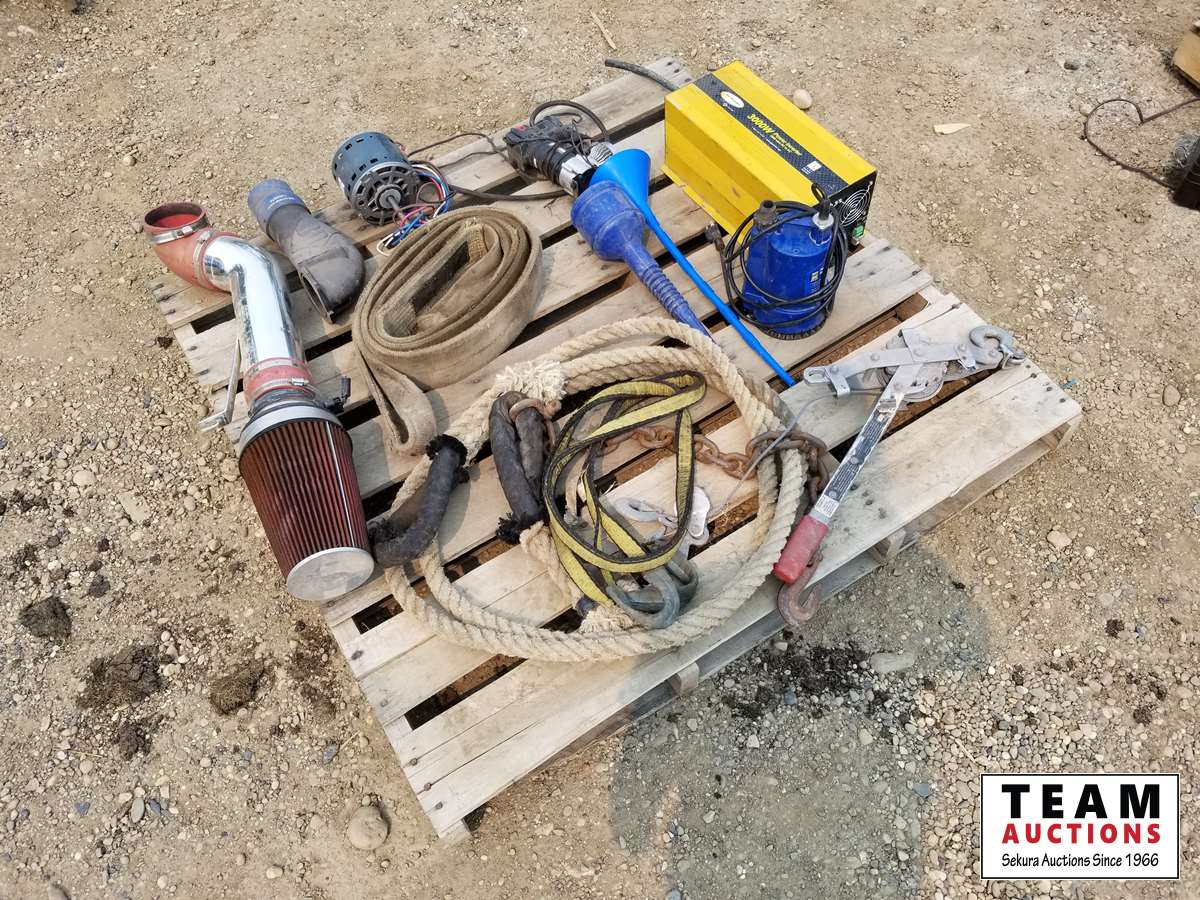 3000 watt power inverter, small electric motor, heavy duty tow rope, sling & come along