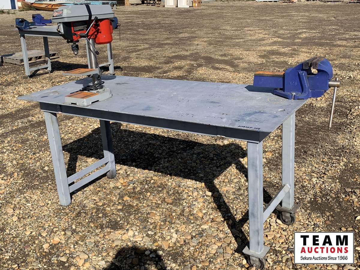 (1) Canwood small drill press, & (1) 5 inch #6 vise mounted to the table