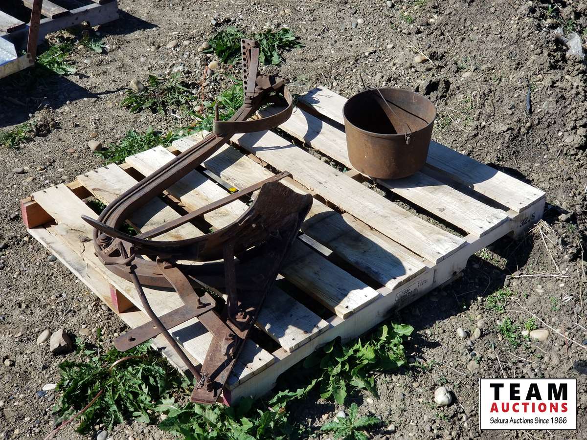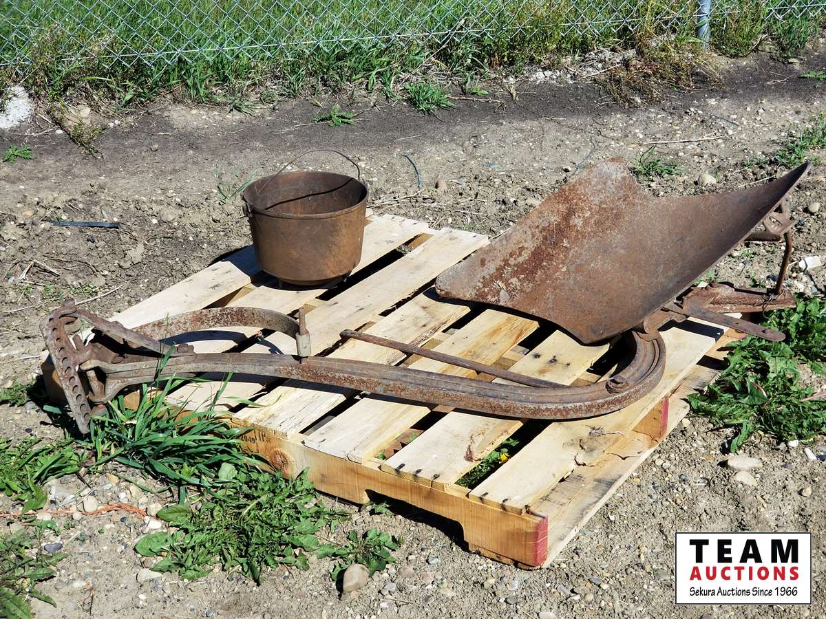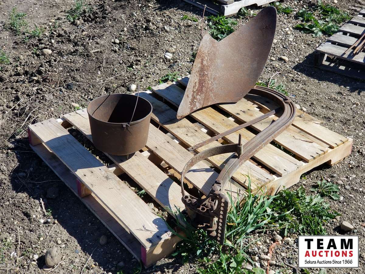89 Antique Plow & Cast Iron Pot