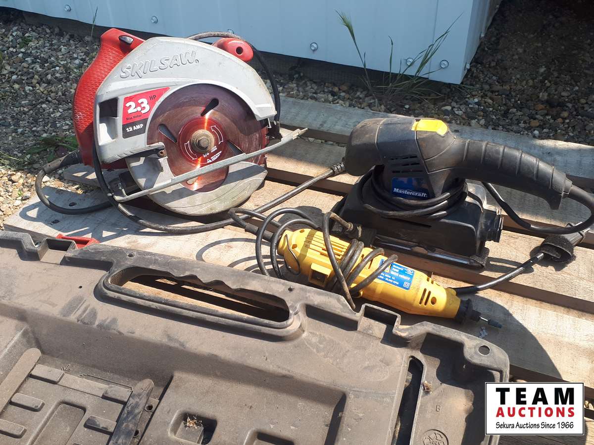 10 inch Powermax chop saw, Skil Saw, electric sander, Skil reciprocating saw, rotary tool