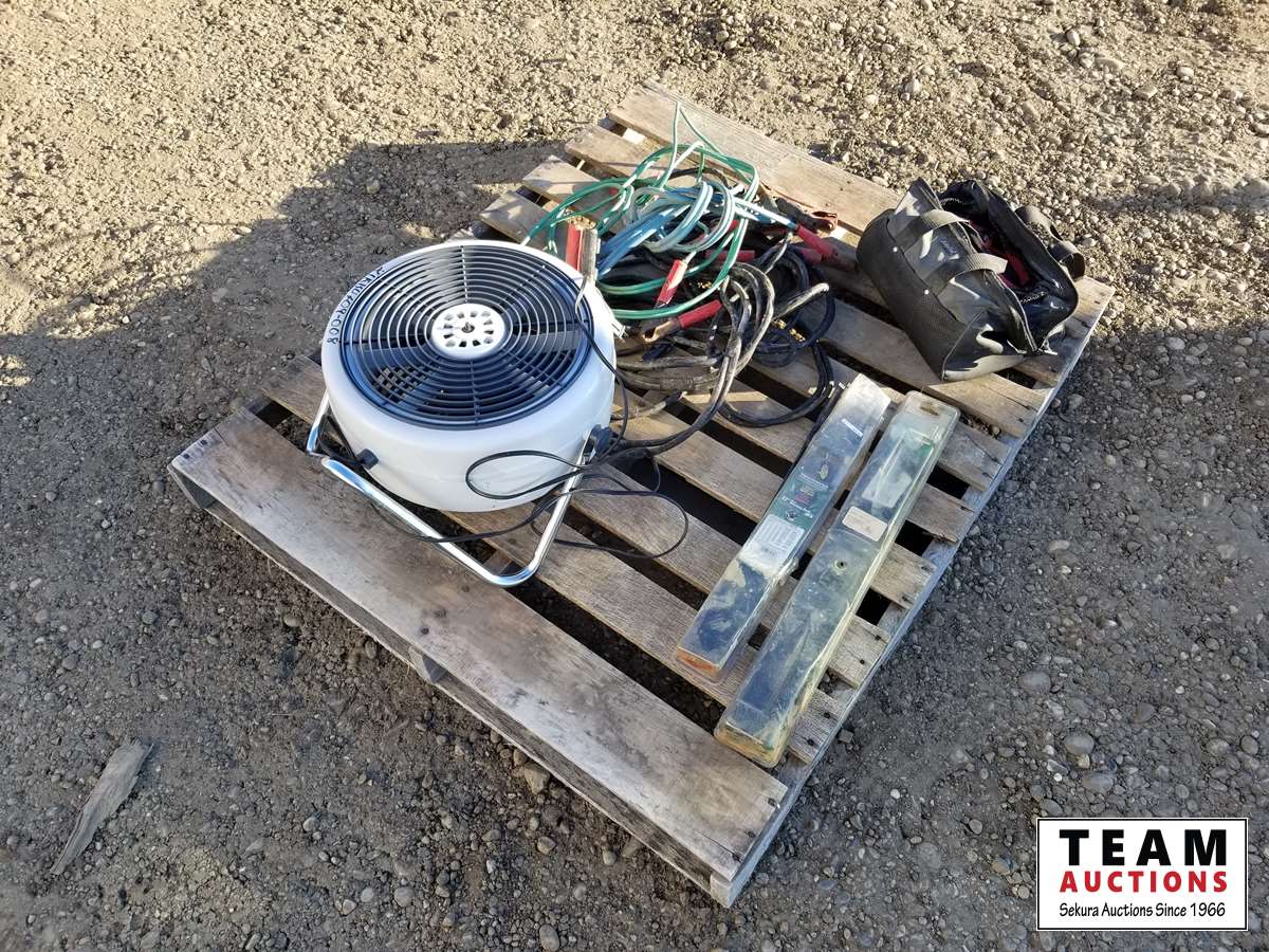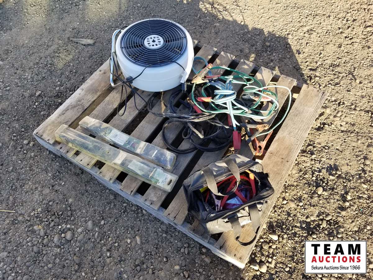 Booster cables, lawnmower blades, fan