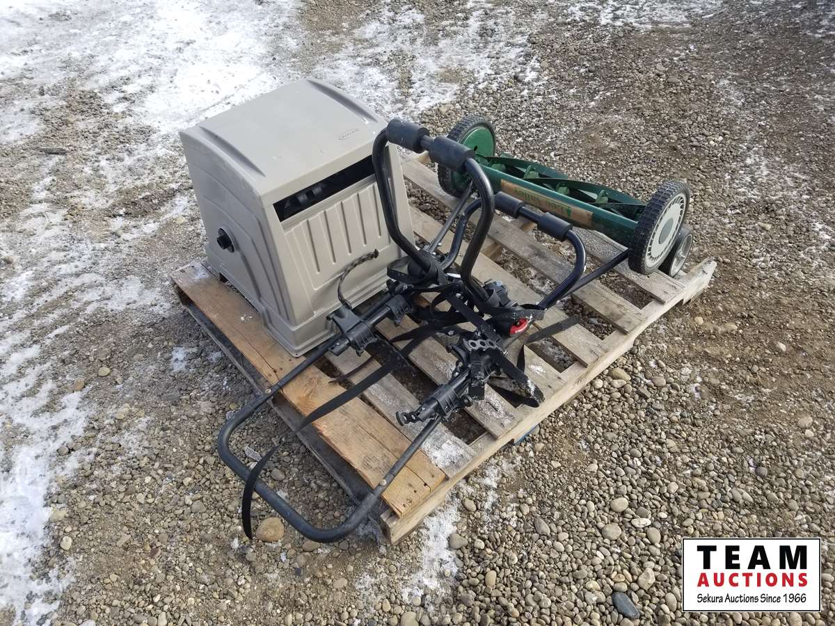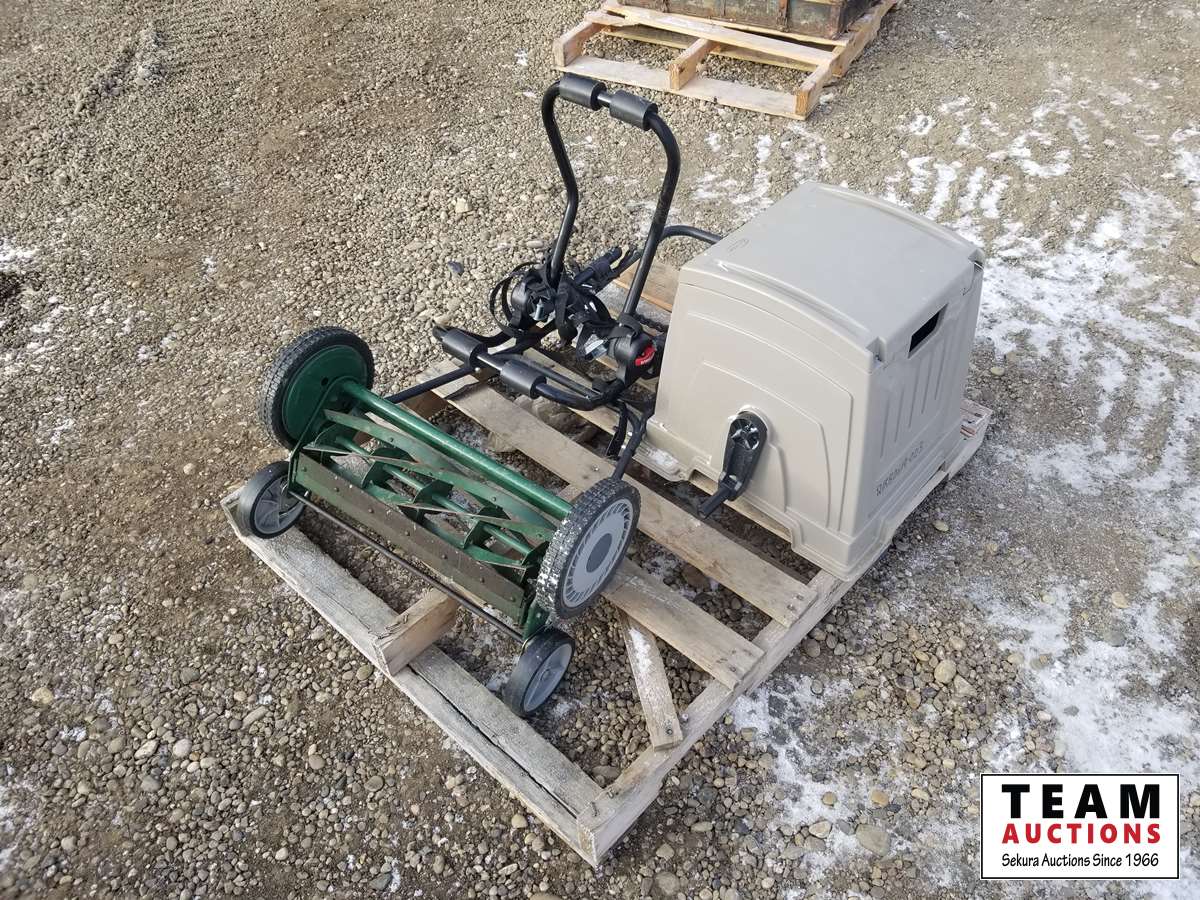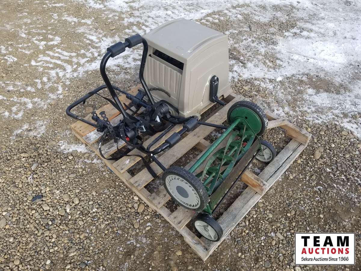 272 Garden Hose Reel, Bike Rack & Walk Behind Lawn Mower