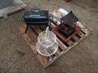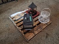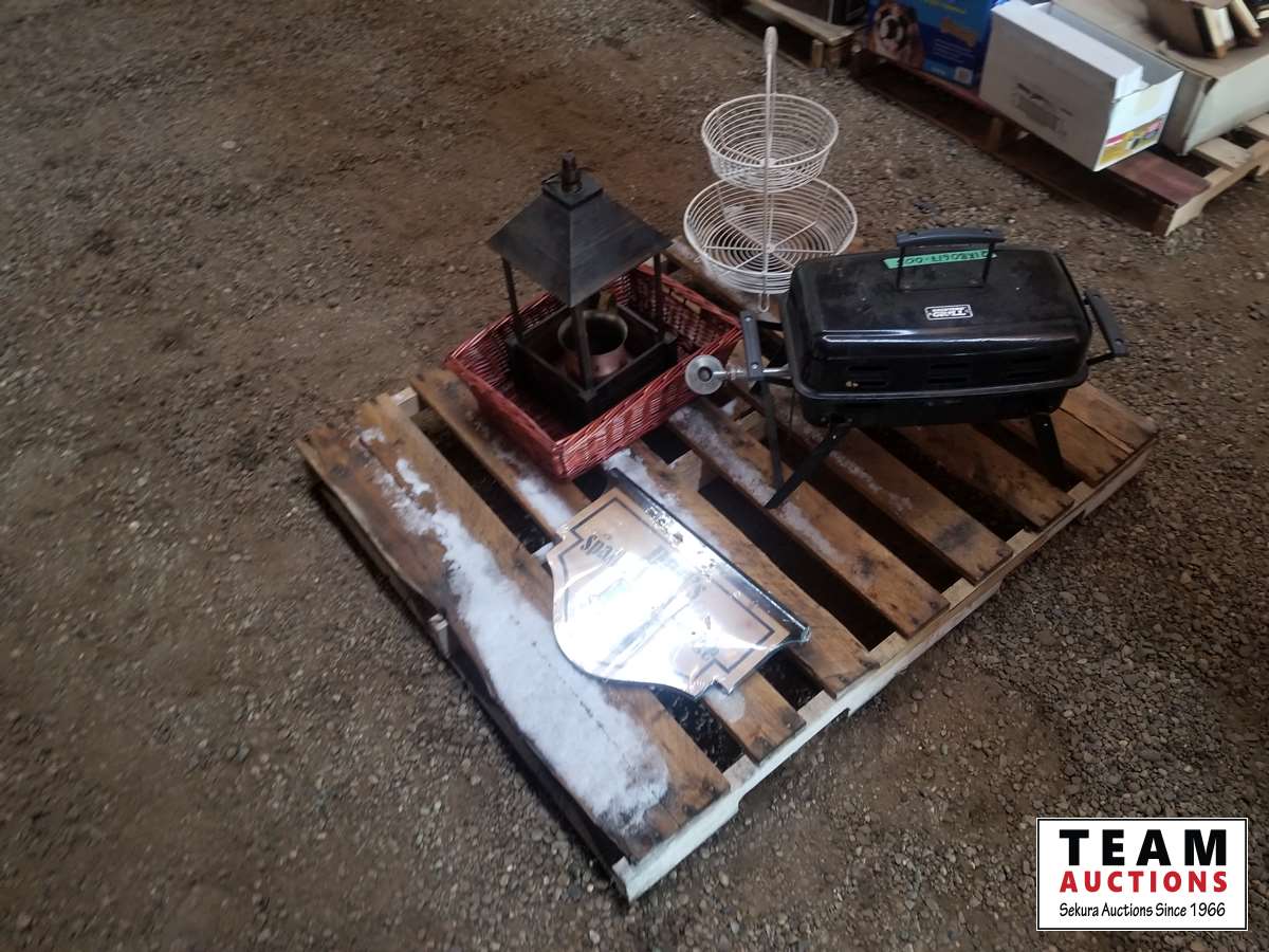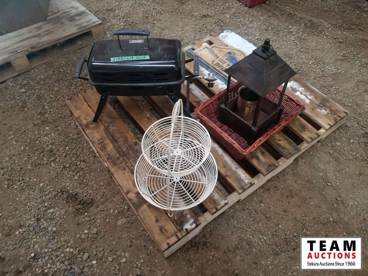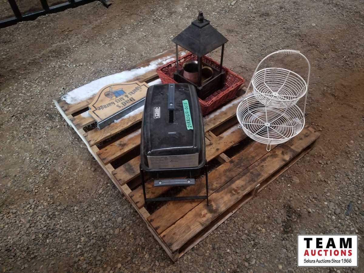 Fruit basket, large candle holder, sign, basket, portable Bar B Que