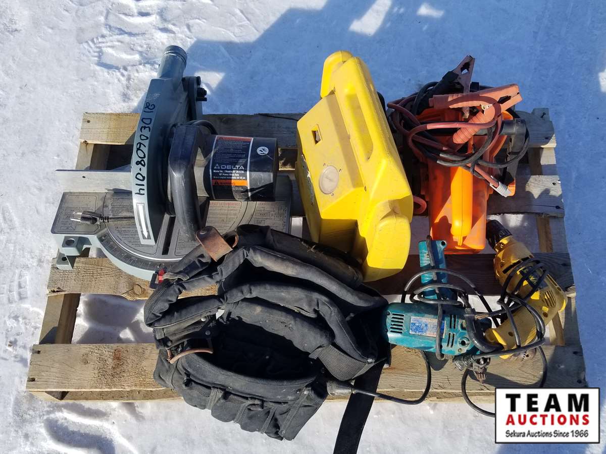 110 (1) Makita Drill, (1) Dewalt Drill, (1) Delta Chopsaw