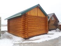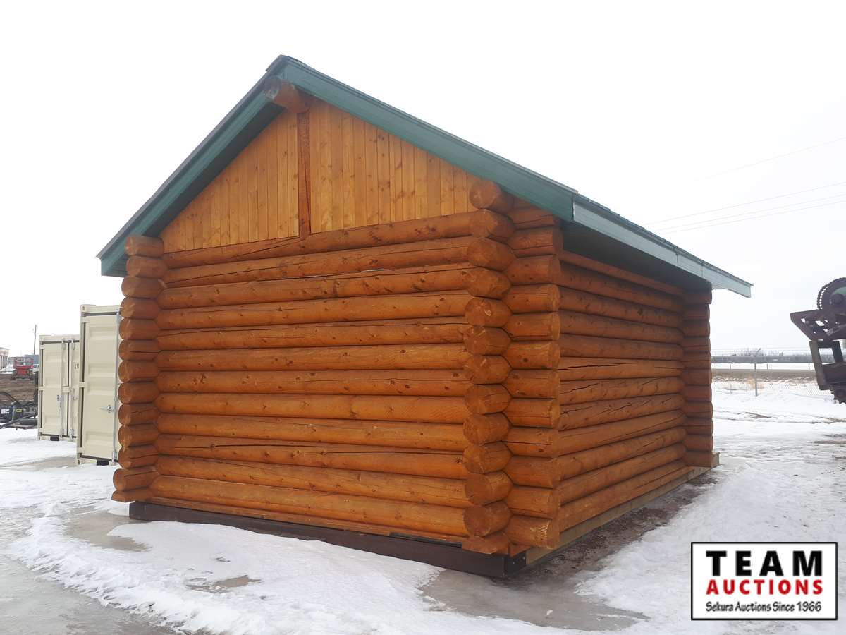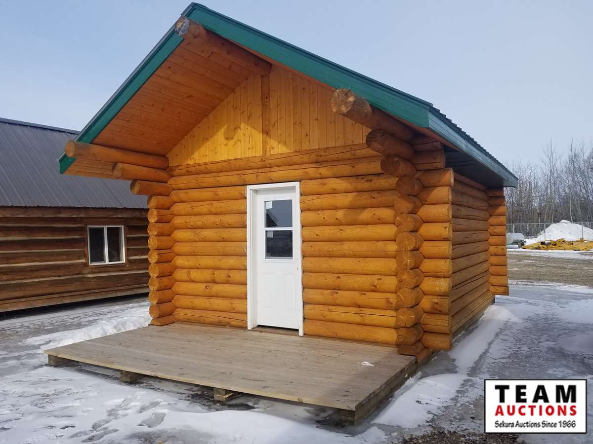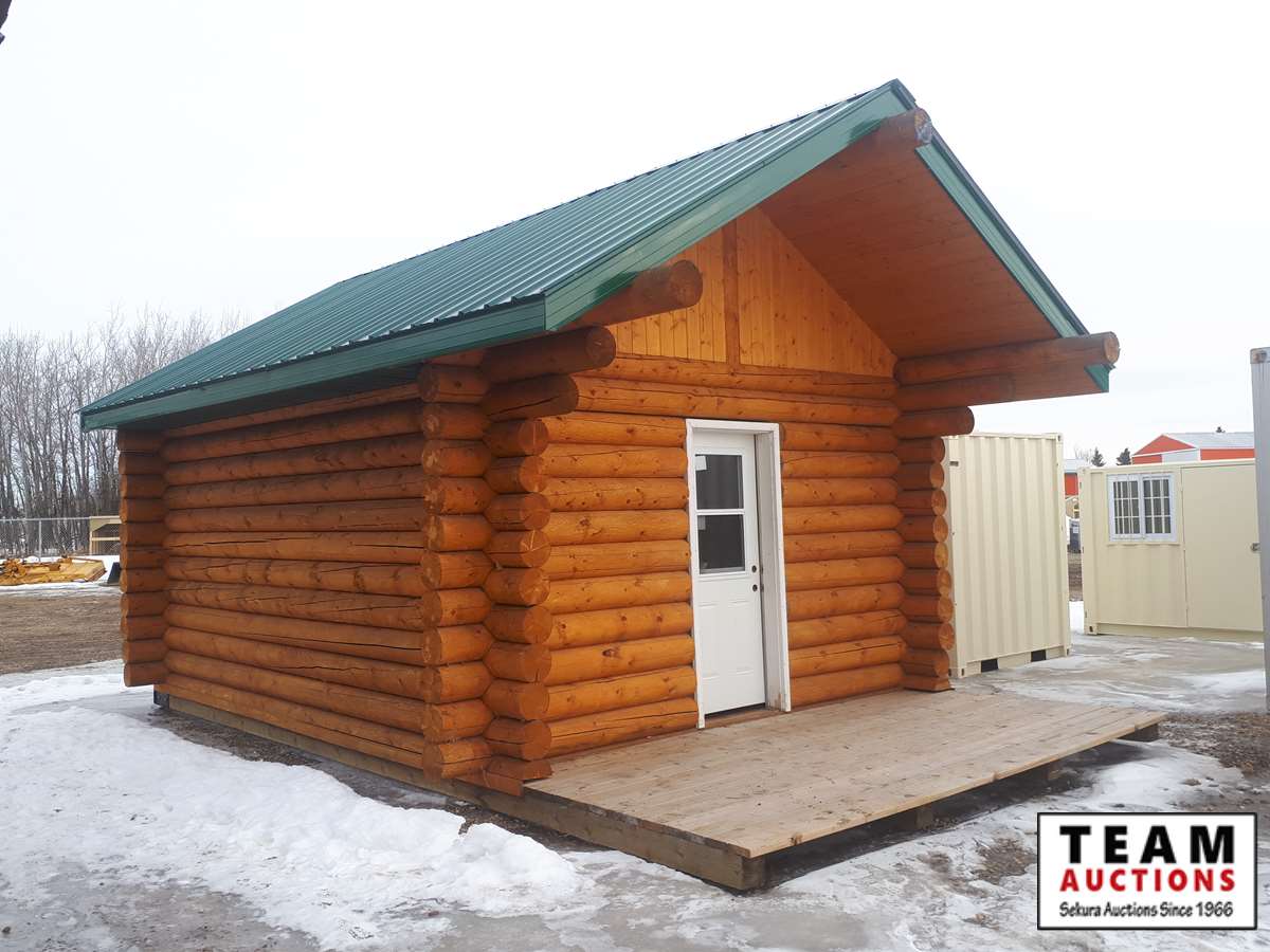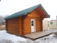 milled logs to 9 in and coped on ends, 10 ft walls, made for loft, insulated floor on four 6 x 6 skids with steel cross members & steel hitch, outside is stained and inside is sanded and ready to finish