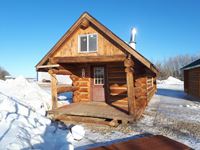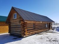 6 ft porch deck, tin roof, 2 lofts, wood stove, fridge, bathtub, toilet, hot water tank, fully plumbed, can be hauled with a scissor neck trailer