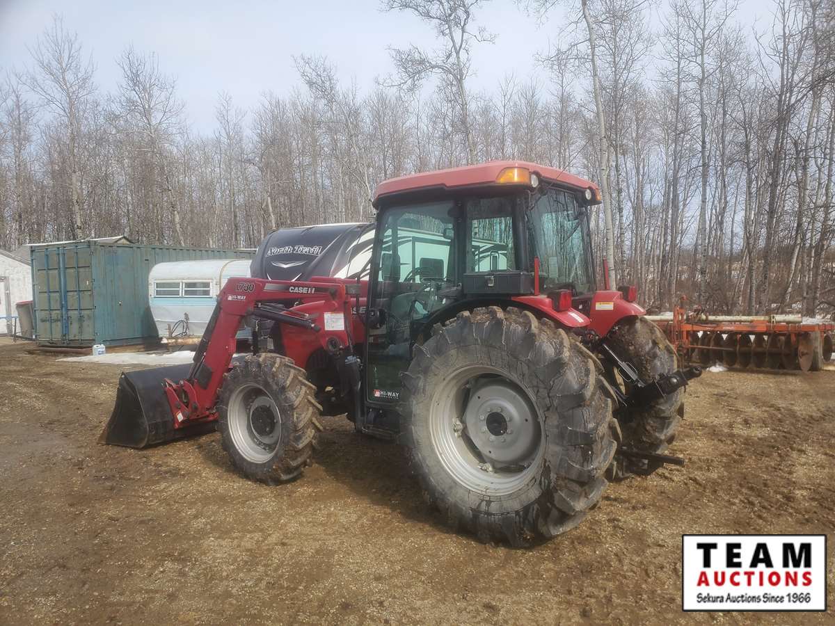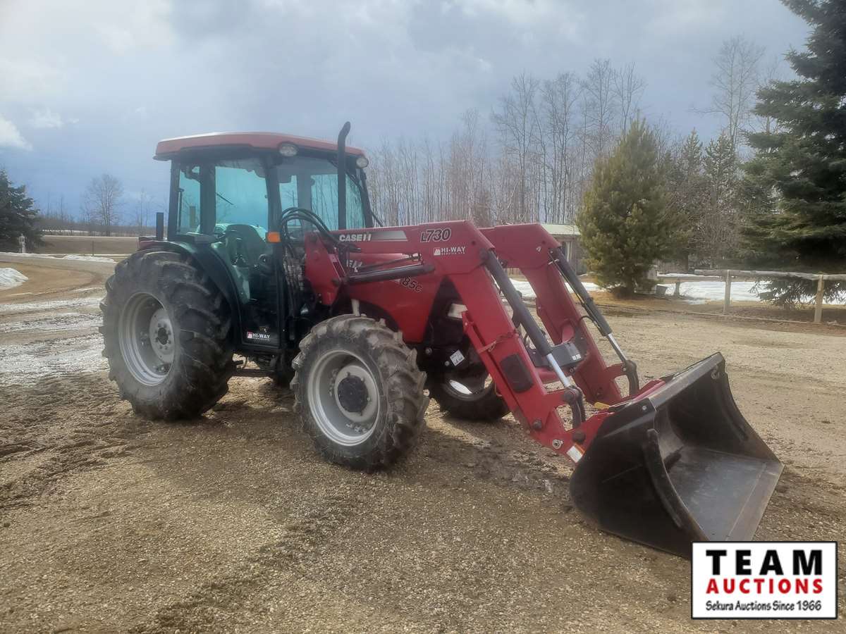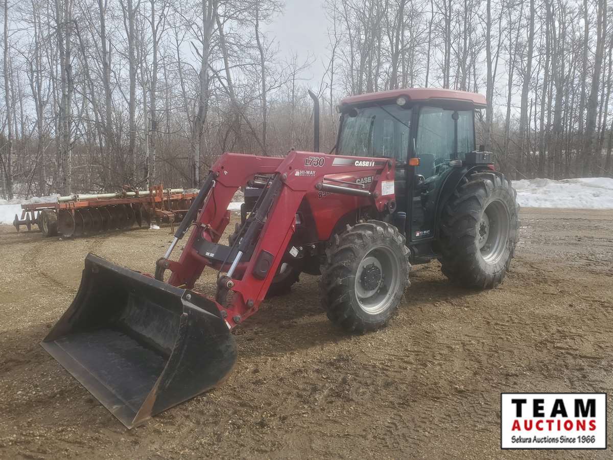 Case IH L730 loader, 72" bucket, joystick, LHR, cab, heat, air, joystick, PTO 540, 3 Pth, 2 hyd outlets, 11.2 R24 Michelin front tires @ 90%, 16.9 R30 Michelin rear tires @ 90%, 720 hrs