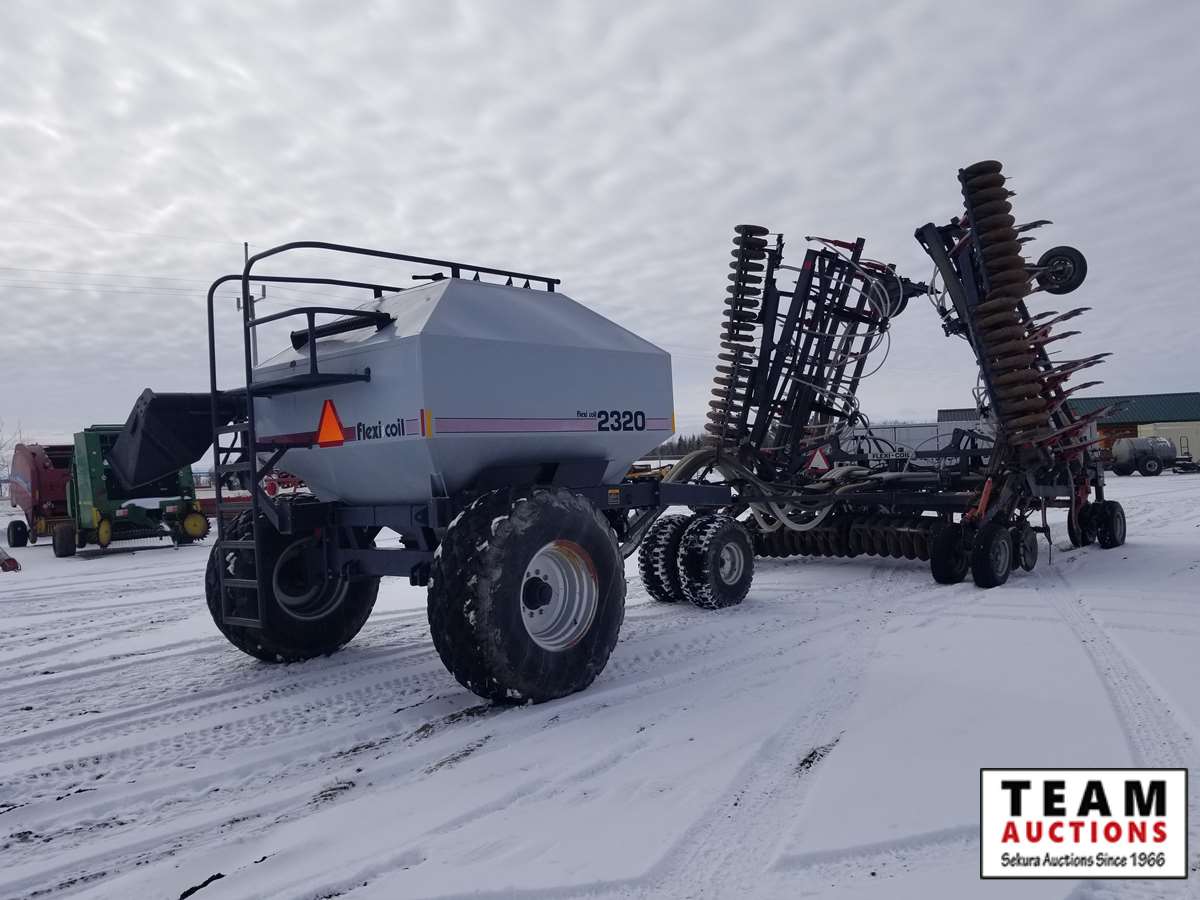 floating hitch, 7 in spacing, single shoot, 3 1/2 in steel packers, Flexi-Coil 2320 cart, 1 fan, 1/2 in openers