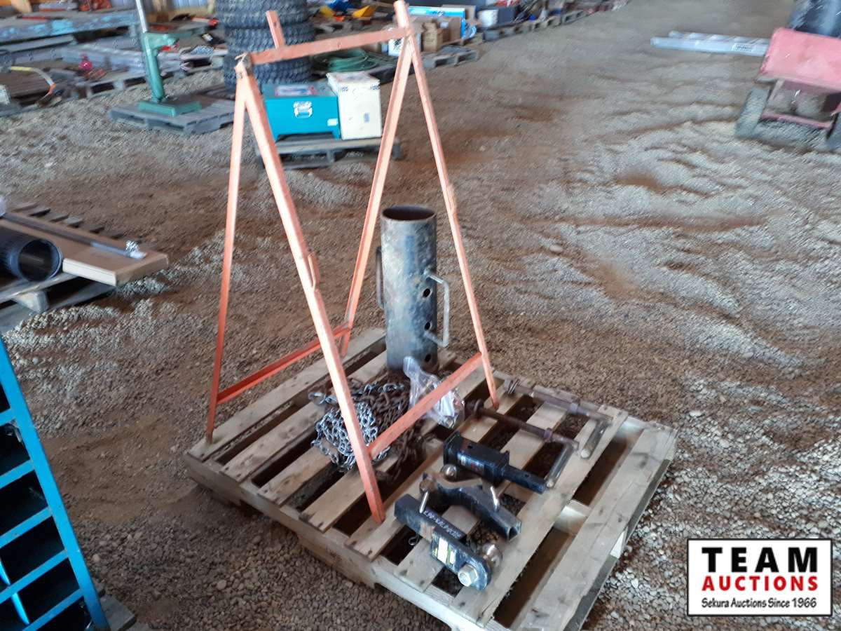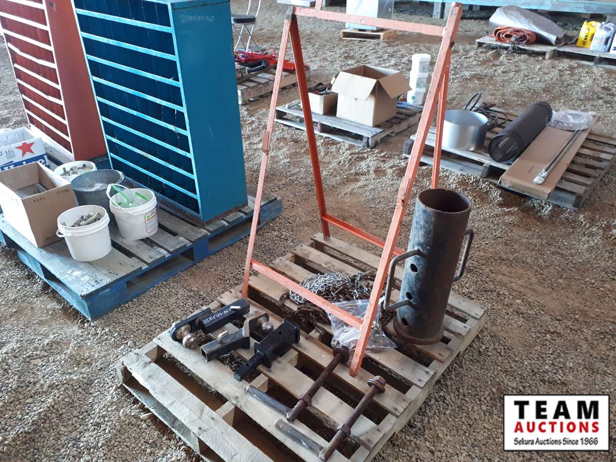 40 Pallet of Misc Chains, Hitches, Hand Post Pounder etc.