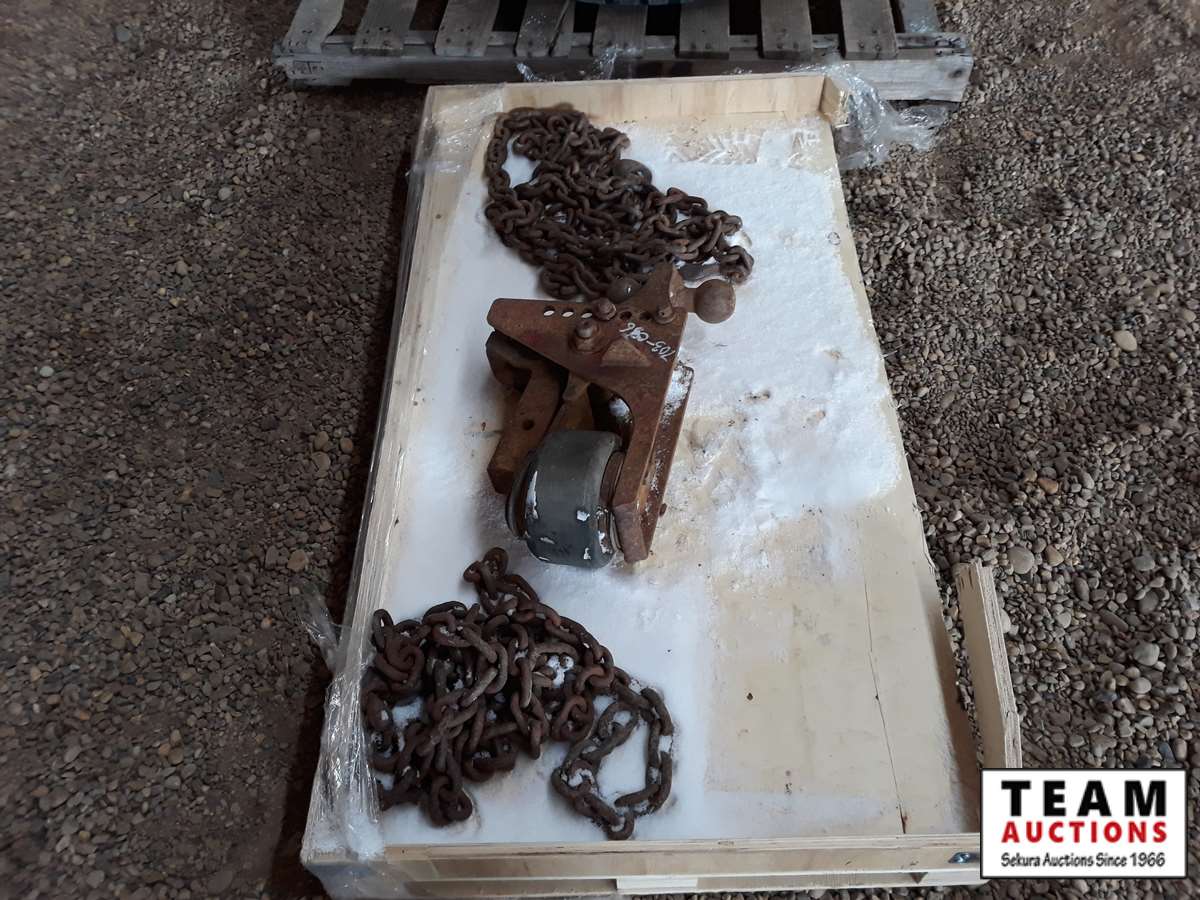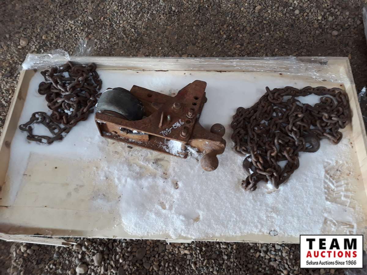 143 Pallet with Shop Built Air Bag Hitch & Misc Chains