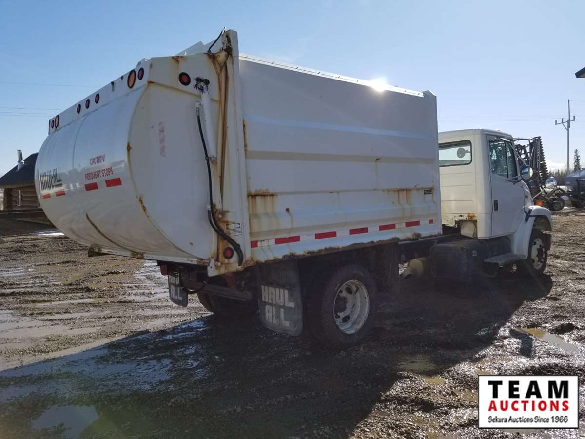 Cat 3126B diesel engine, Allison 2400 auto transmission, 10 ft box, hydraulic brakes, spring suspension, c/w garage compactor, haul all, Driver's side load, 245/70R19.5 tires, duals, white, 259672 kms