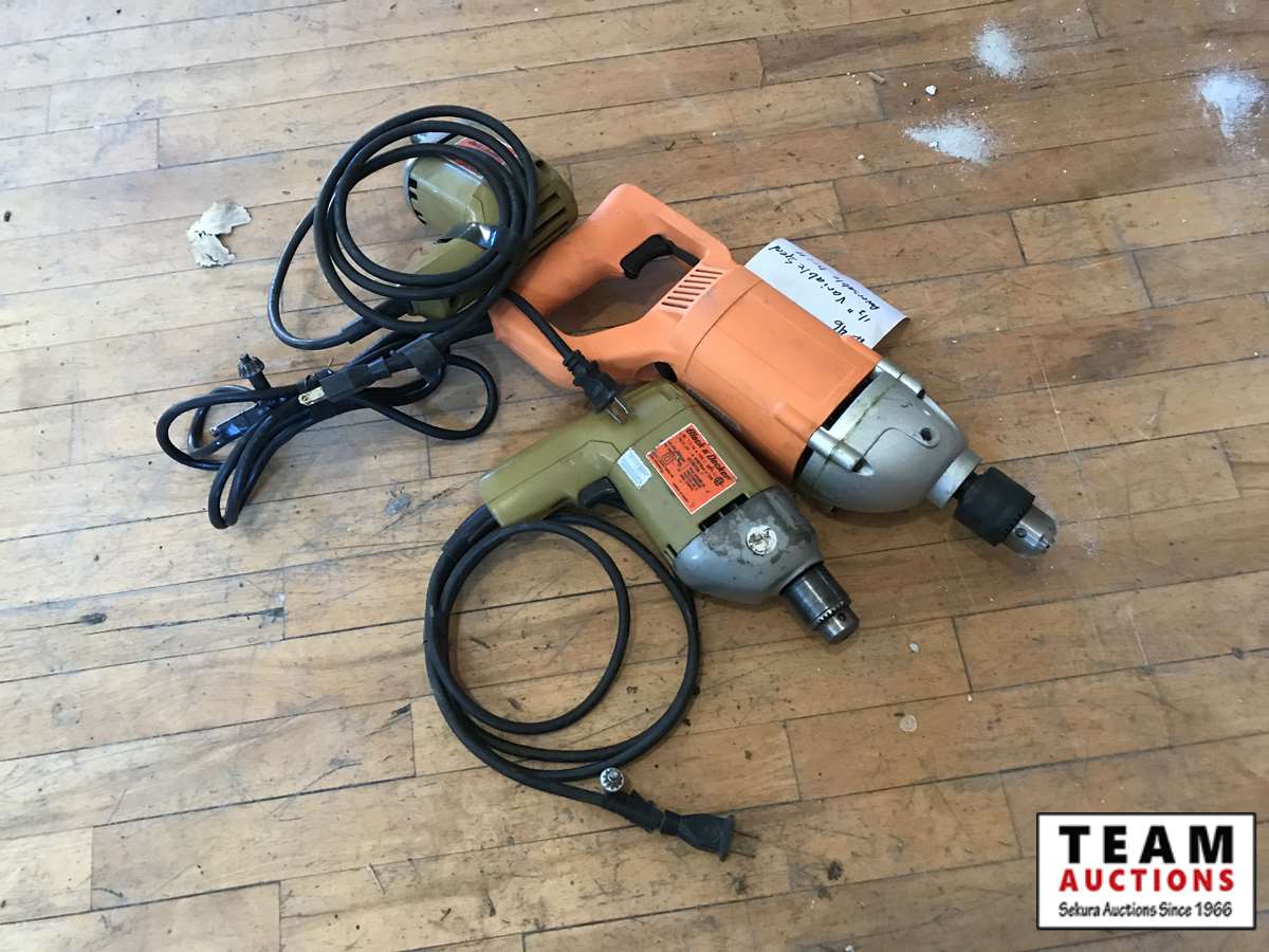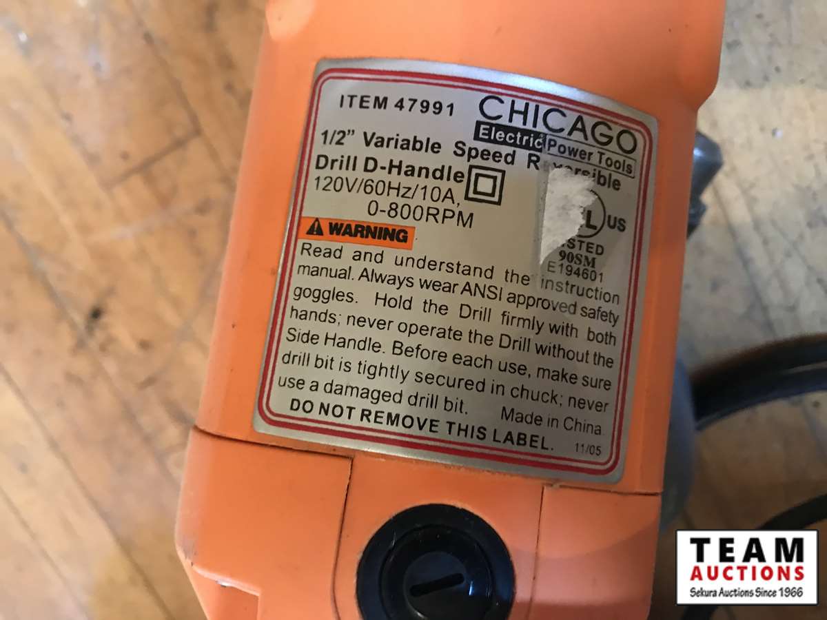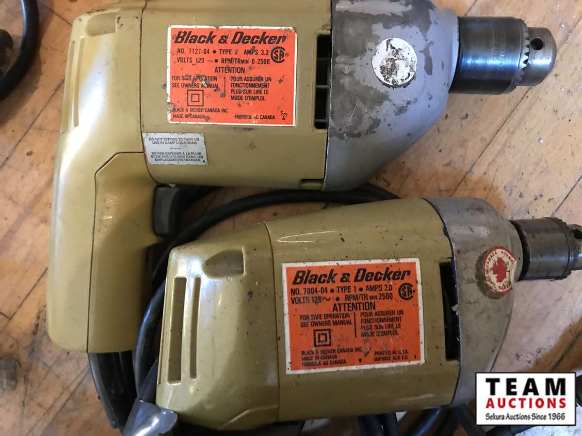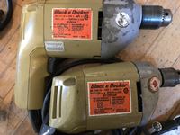Chicago 1/2 in. variable speed D handle drill, Black & Decker 3/8 in. drill, Black & Decker 1/4 in. drill